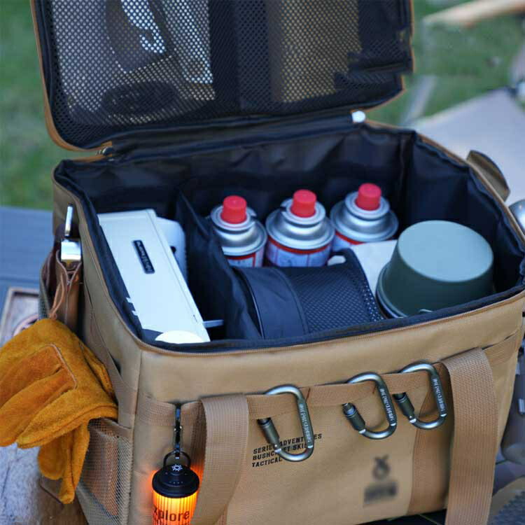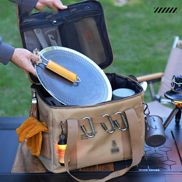 ・カラビナループにメッシュポケットと、シンプルな設計ながらも細部のこだわりが魅力のマルチギアコンテナ。