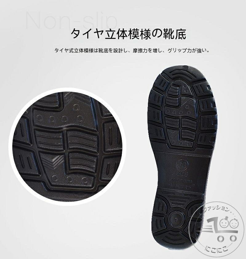 【滑べりにくい-耐久性が抜群な靴底】厨房用作業靴の靴底は滑り止めを求める特殊な柄物を採用し、水や油が飛び散り安い調理場または厨房の床で走っても滑る心配は要らない、本格派の作業用安全靴です。また、厨房用靴は耐油性に優れたゴム底を採用し、油や長年着用による劣化をしっかり防ぎ、長く使うことができます。
