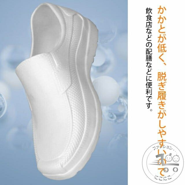 【高品質のEVA素材】アッパーは耐油性・防水性に優れたEVA樹脂素材で細工され、防水可能!インソールは吸汗速乾、クッション性に優れたEVAスポンジで仕上げられ、蒸れない!靴底は滑り止めの合成ゴムで作られ、滑り防止可能!安全性と快適性を兼ね備え、厨房スニーカーとしてはピッタリ!