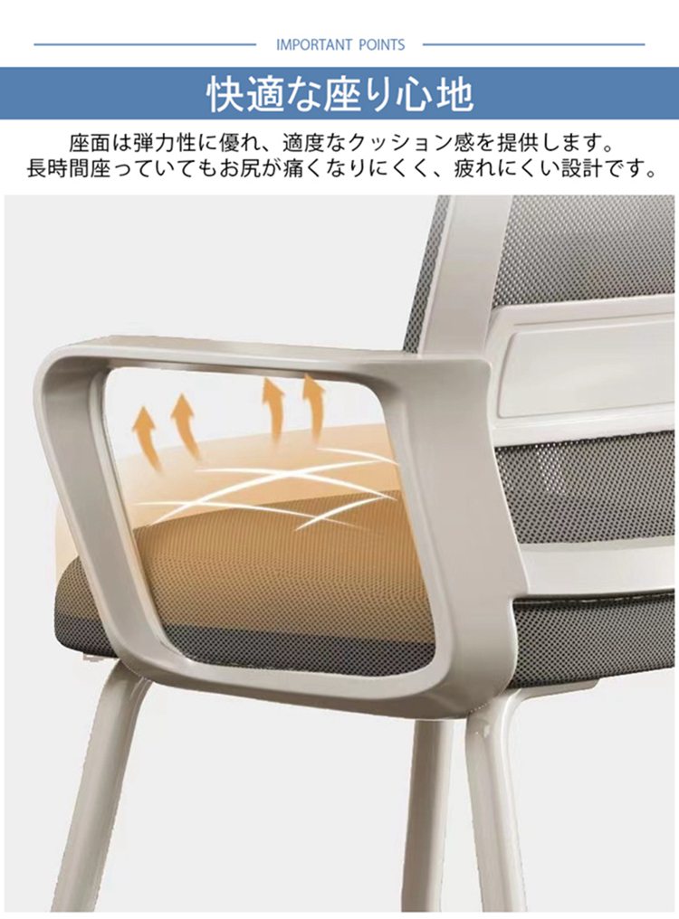 オフィスチェア ミーティングチェア デスクチェア メッシュ背もたれ 通気性 オフィス 会社 会議室 社員いす 講習 組立簡単 高反発座面 事務椅子人間工学 パソコンチェア 勉強 家庭用 イス