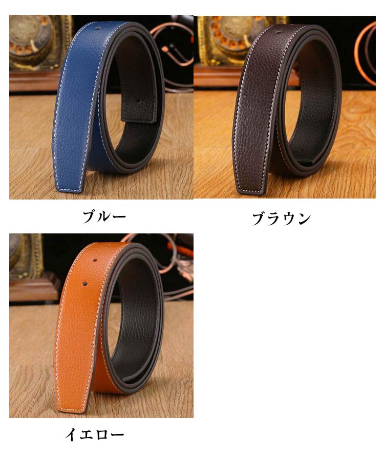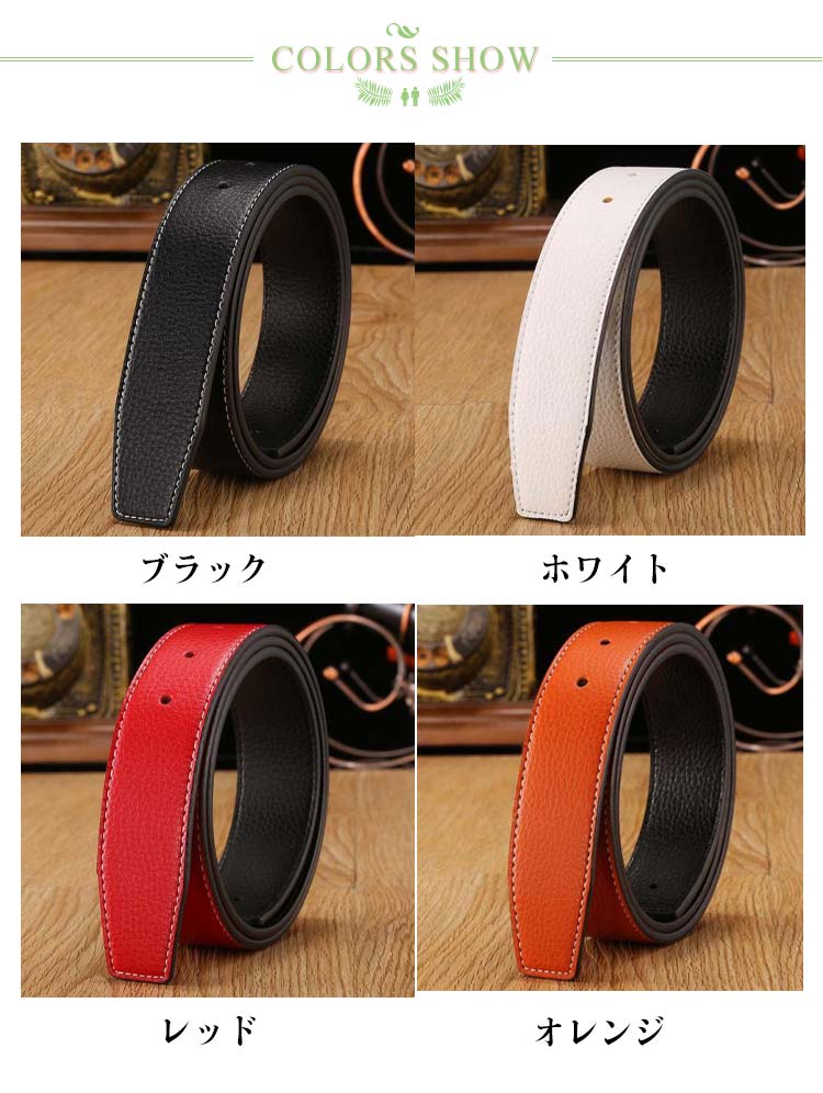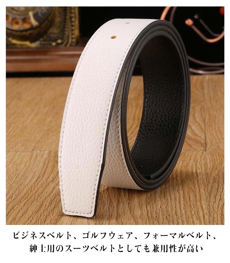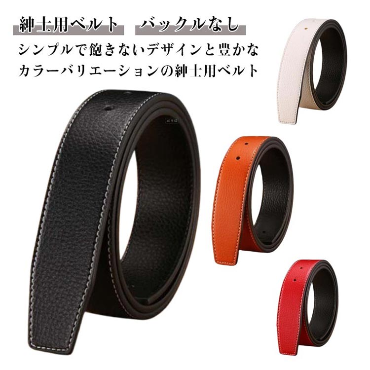 メンズ カジュアルベルト 37mm バックルなし PU革 無段階調整 紳士用 替えベルト 幅3.7cm ゴルフ用 交換用 黒 ホワイト オレンジ ブルー ブラウン レッド