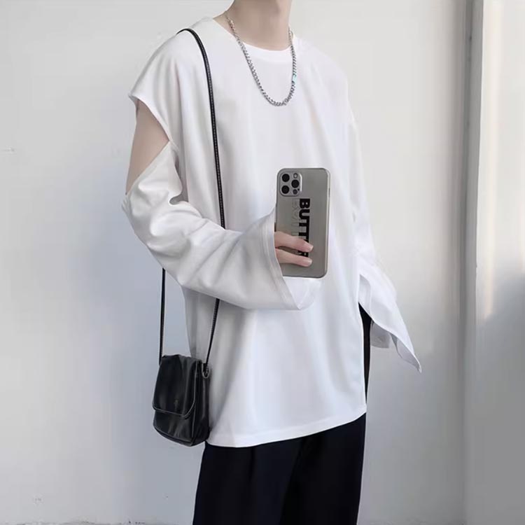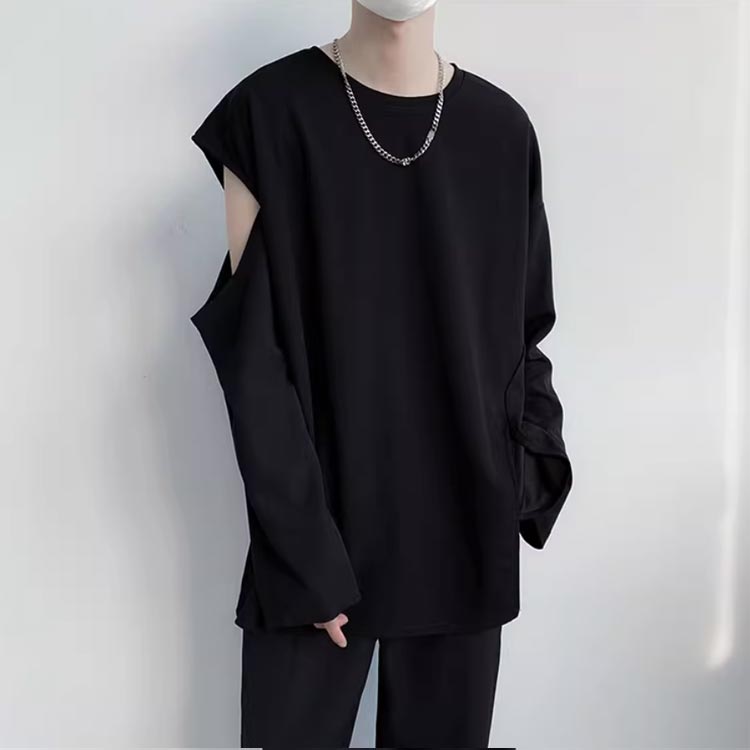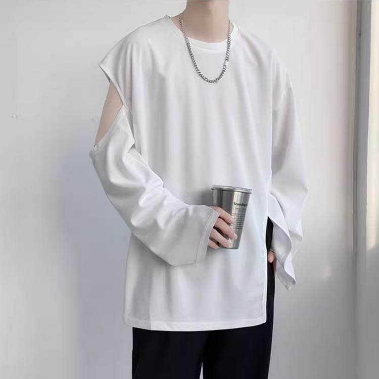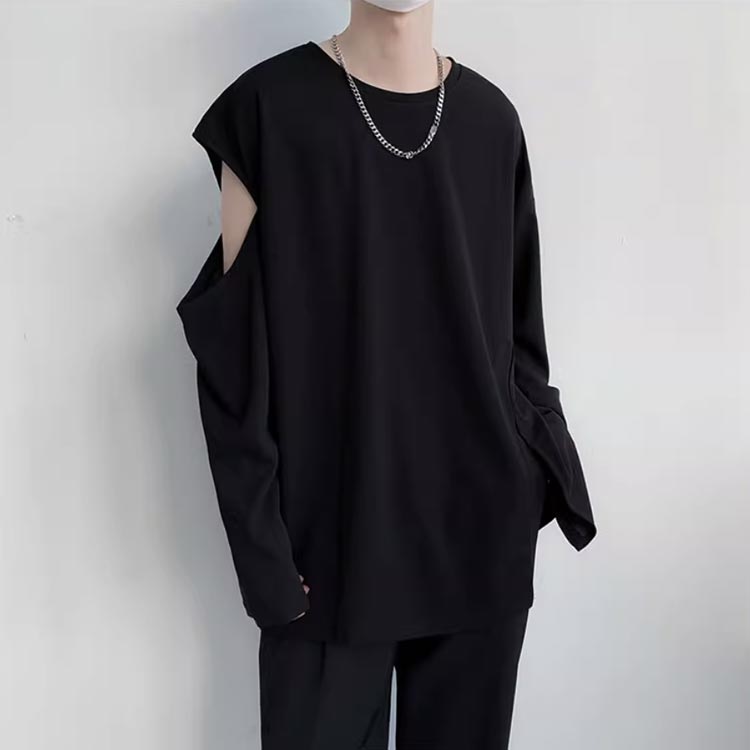 L プルオーバー メンズ オフショルダー トップス 肩出しデザイン 長袖カットソー ユニセックス カップルウェア カジュアル 韓国ファッション 黒 白 M スウェット 2XL 大きいサイズ 春夏 XL