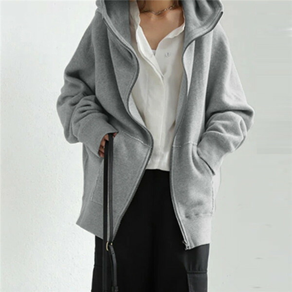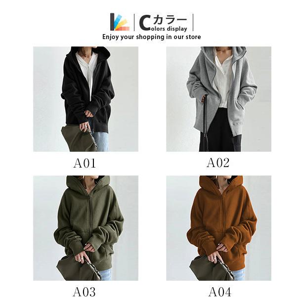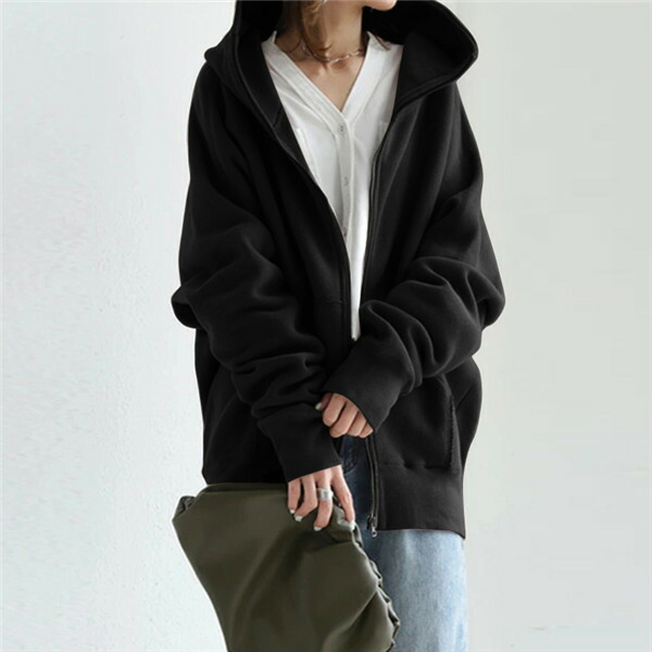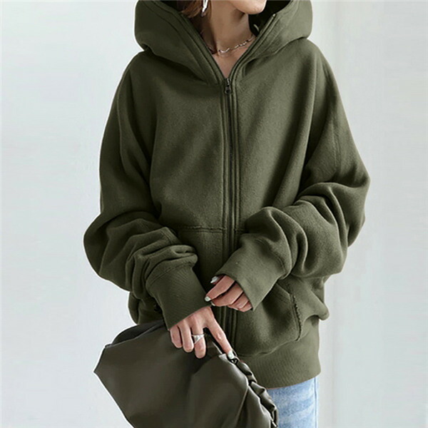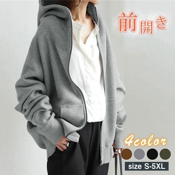 ジップパーカー パーカー レディース トップス 前開き ジップアップ 長袖 無地 カジュアル 羽織り フード付き ゆったり 体型カバー アウター