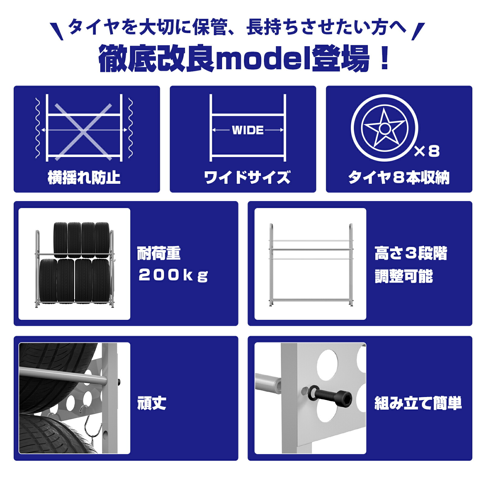 場所を取る2台分のタイヤ、最大8本をこれ1台にスッキリ収納!