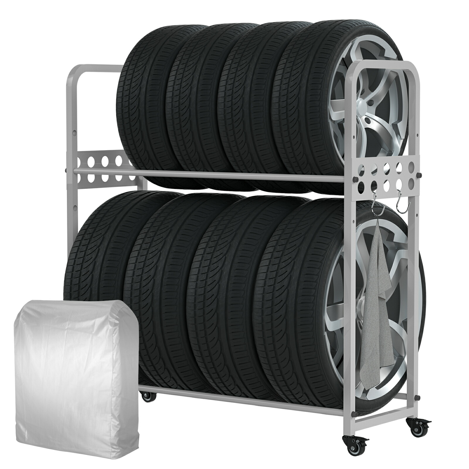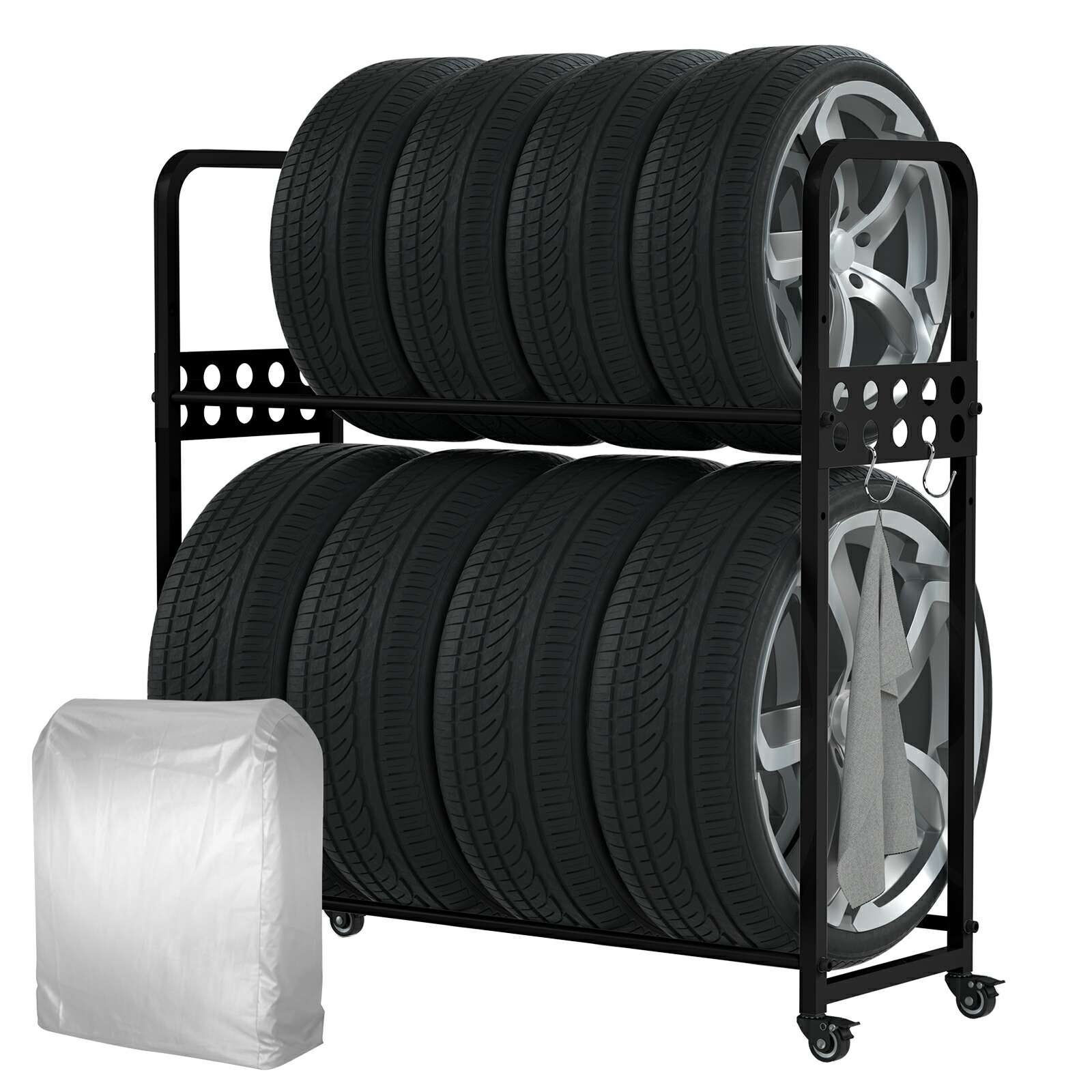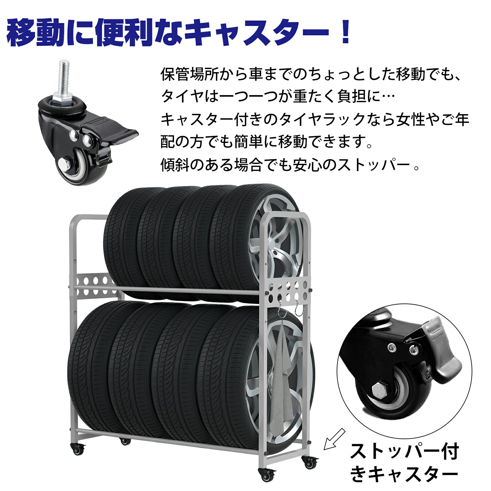 タイヤラック タイヤラックカバー キャスター タイヤラックセット タイヤスタンド 二段式タイヤスタンド 縦置き 車用タイヤラック タイヤ交換 8本 タイヤ収納 耐荷重200kg 軽自動車 大型自 屋外