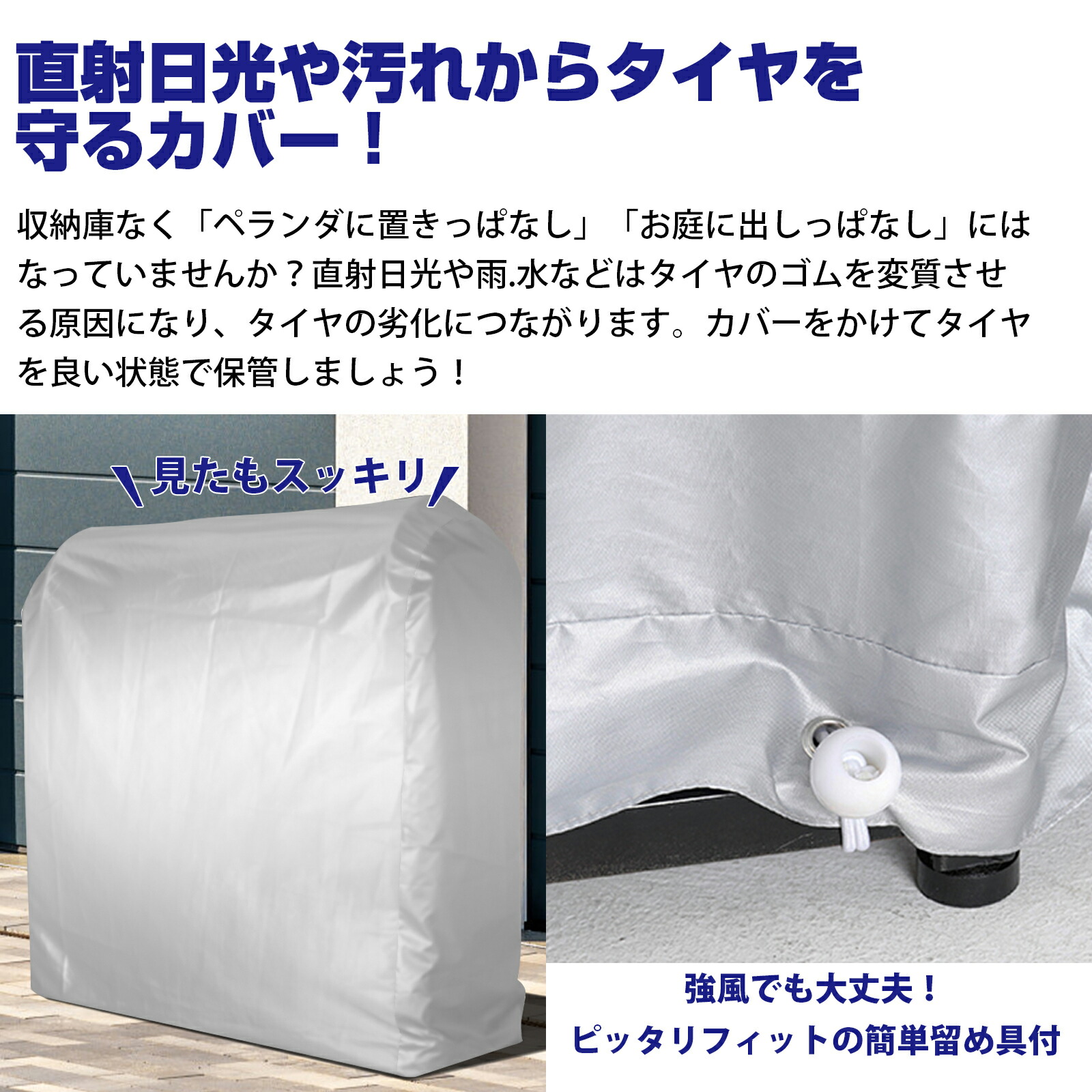 雨・雪、ほこり等からラックごとタイヤを守ります。