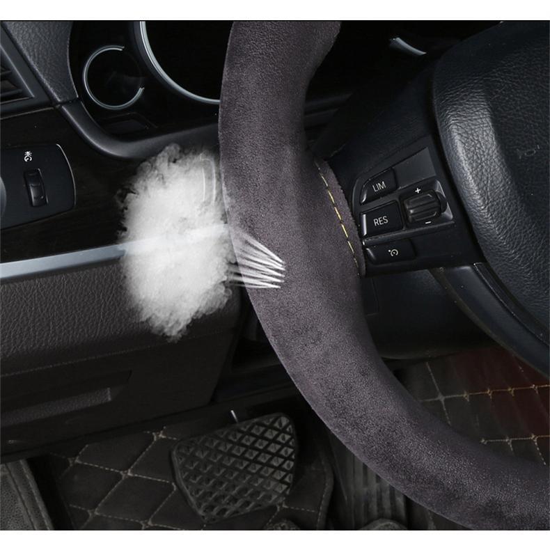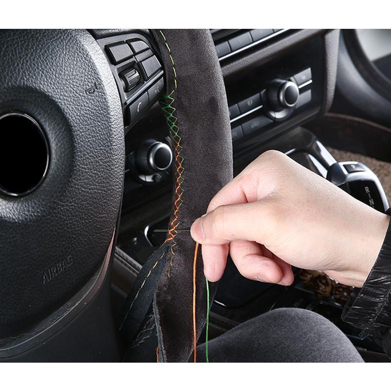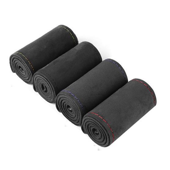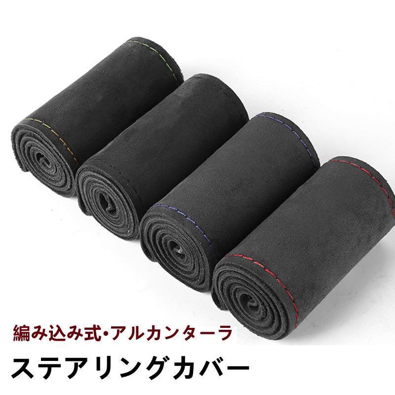 ハンドルカバー ステアリングカバー 手縫い 編み込み アルカンターラ レザー 自動車用 軽自動車 撥水 簡単装着 乗用車 内装用品 握りやすい