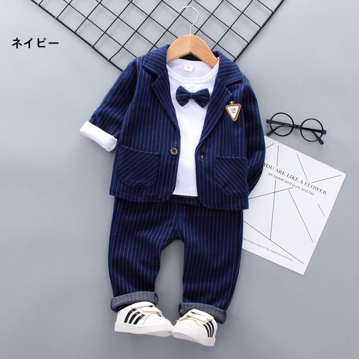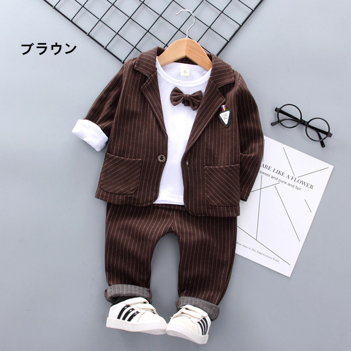 スーツ 男の子 子供服 フォーマルスーツ ジャケット 蝶ネクタイ 3点セット 上下セット ストライプ 七五三 子供スーツ フォーマル ベビー 入学式 卒業式 入園式 赤ちゃん