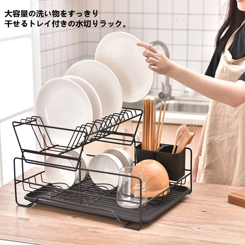 水切り 水切りかご 水切りカゴ 2段式 キッチン整理用品 水切りラック 超目玉商品 ブラック ホワイト