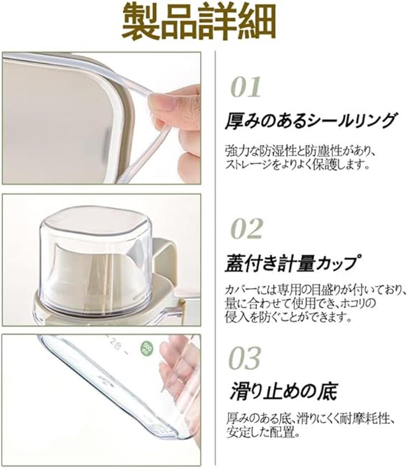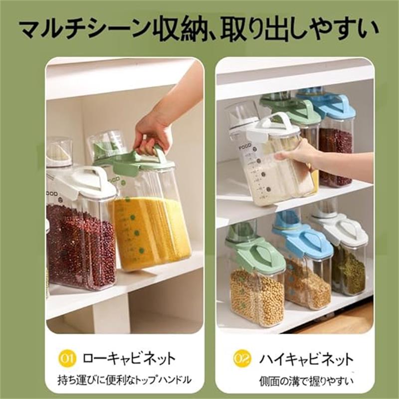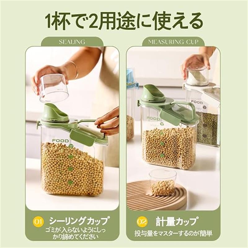 ご飯、穀物、ナッツ類、スナック類などを保存するのは家族にとって理想的な選択です。ドッグフードやキャットフード、小動物のフード保管にも最適です。