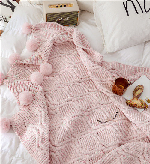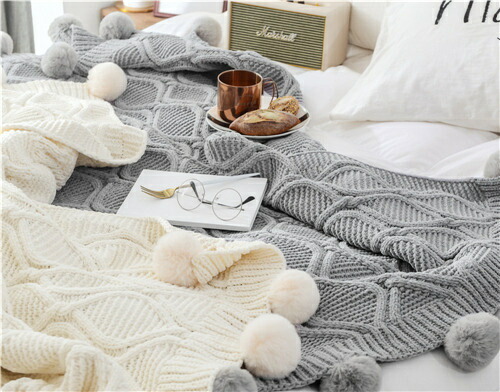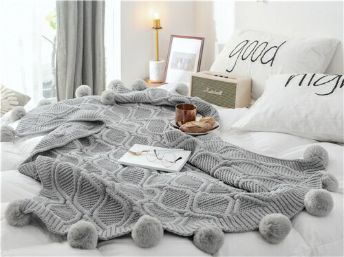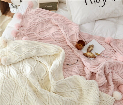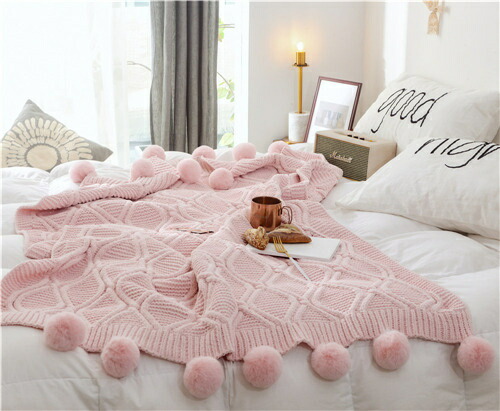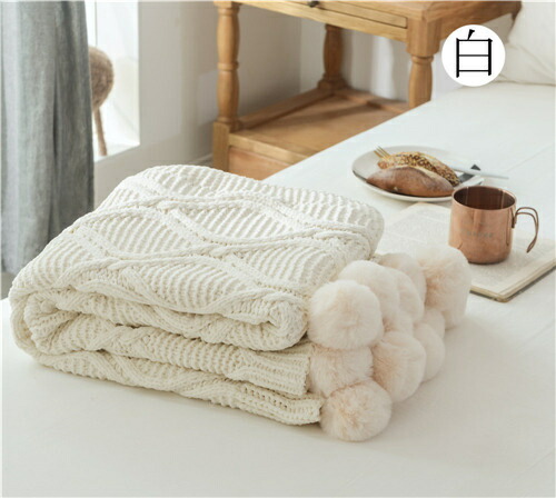 かわいい ブランケット 夏用 サマー 大判 ひざ掛け 北欧 ポンポン 毛布 シングル ベッドカバー ダブル 布団カバー おしゃれ ボンボン ソファーカバー 白 掛け毛布 無地 ニットブラ タオルケット