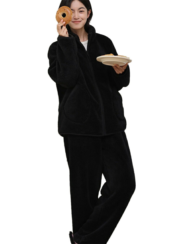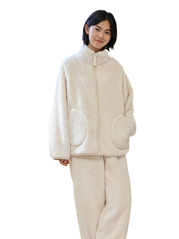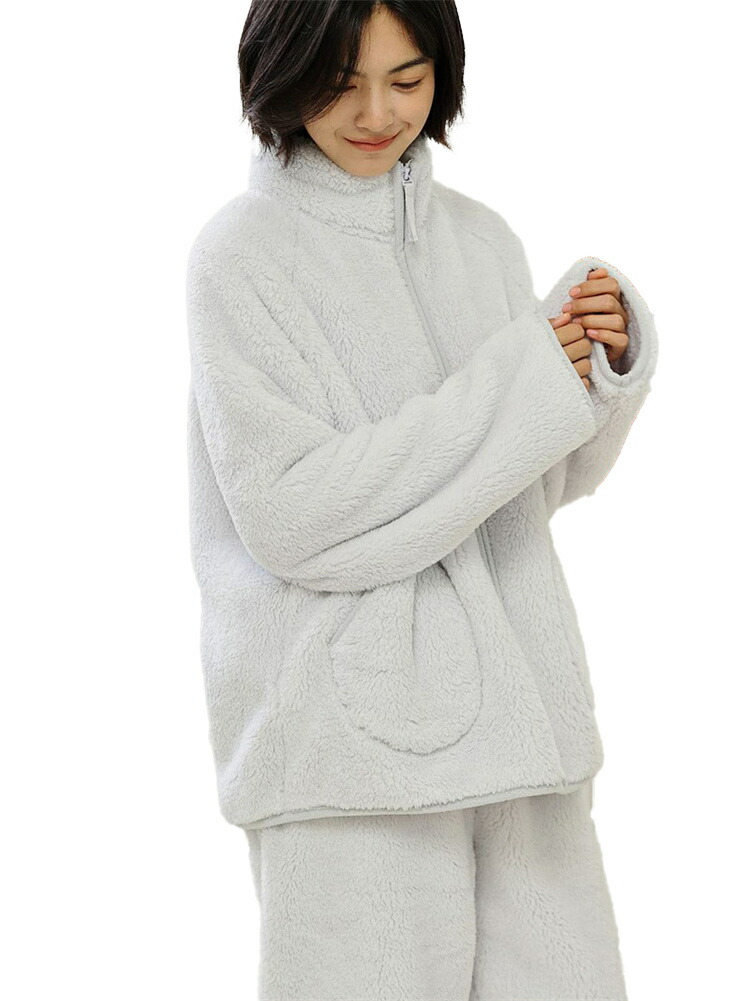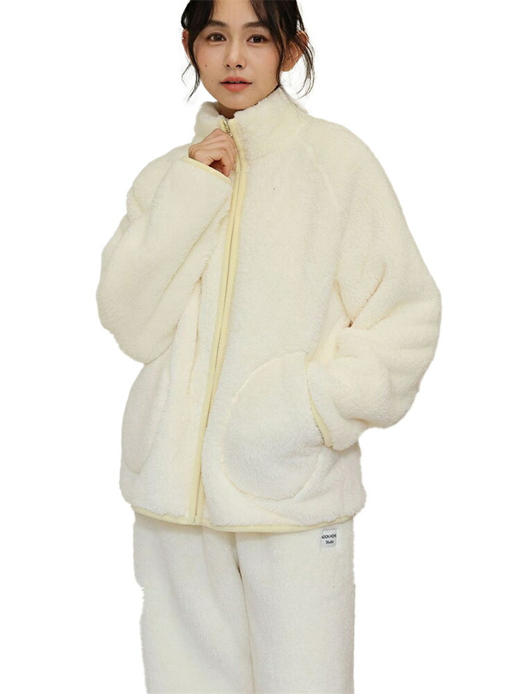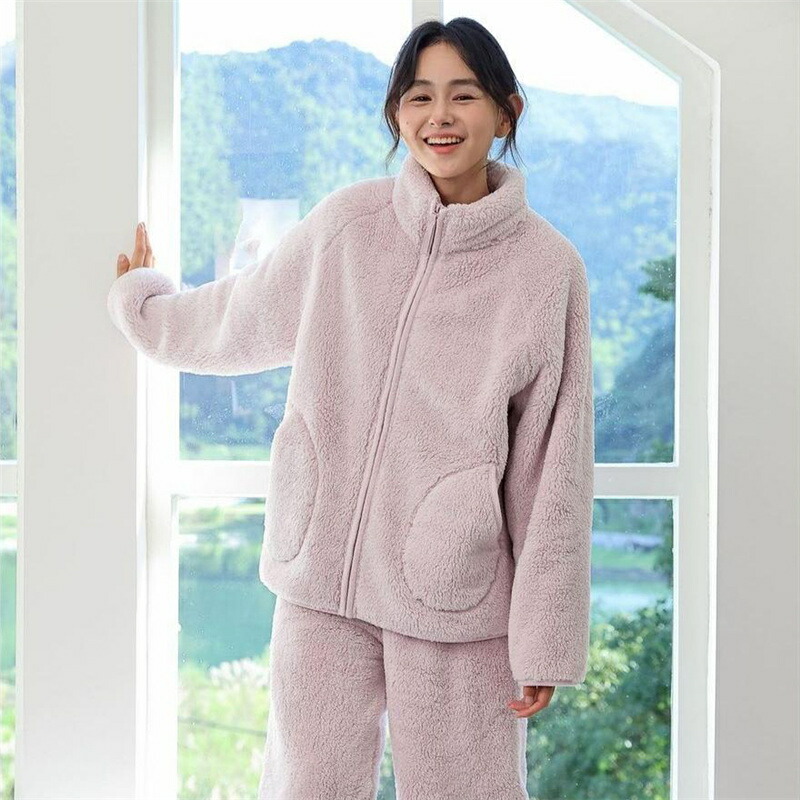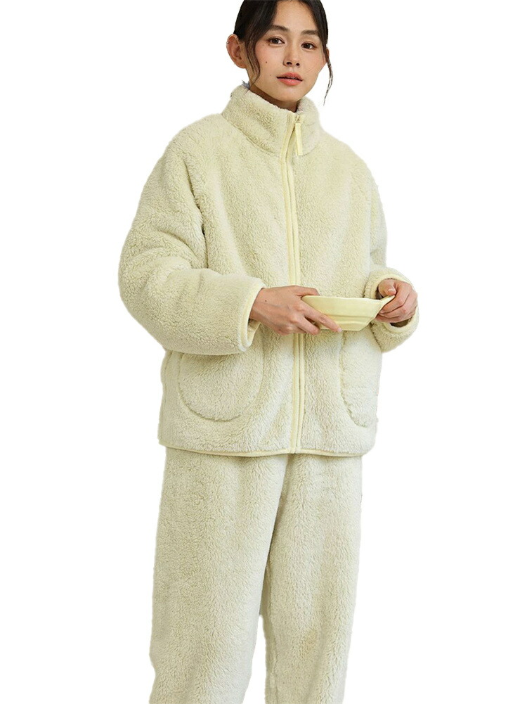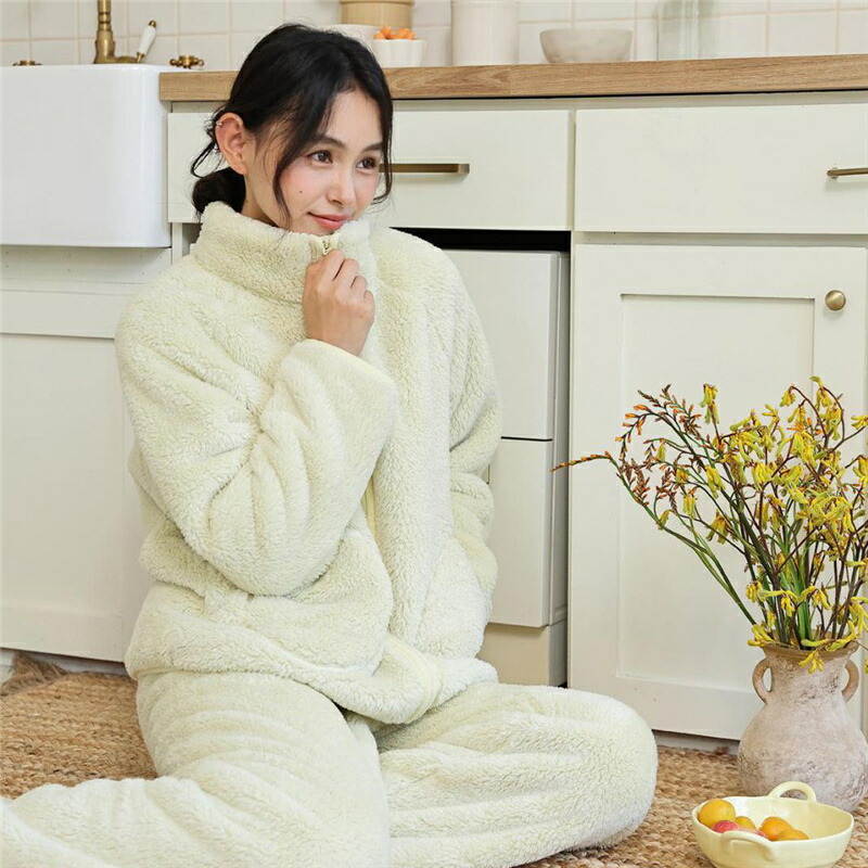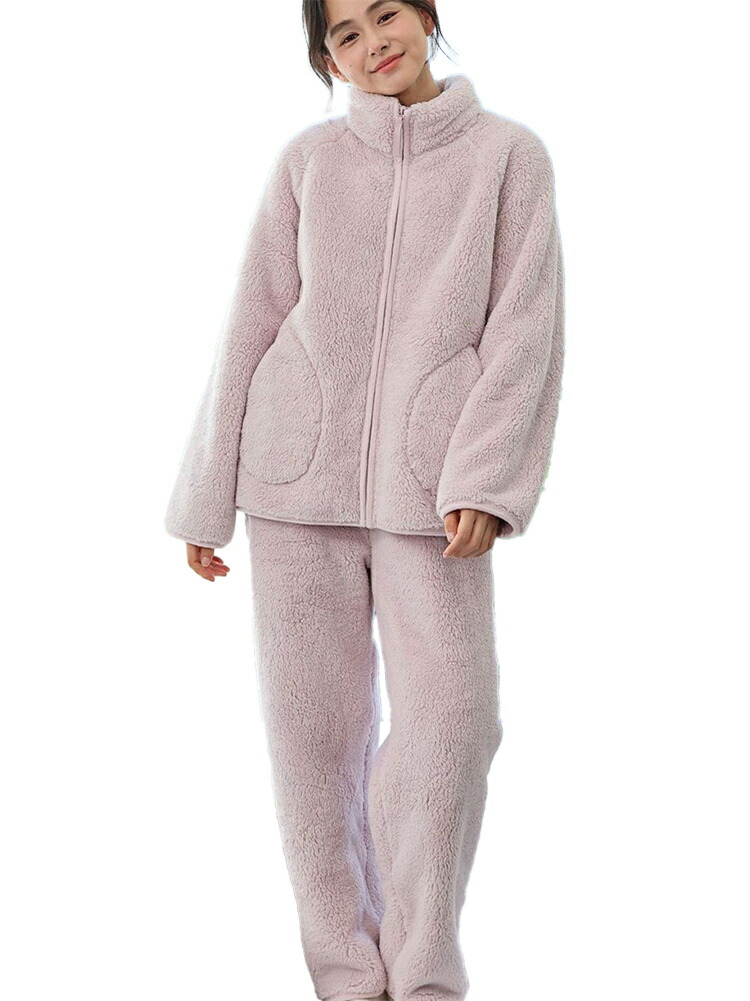 パジャマ レディース ルームウェア もこもこ あったか 厚手 ソフト カジュアル 防寒 セットアップ 秋冬 スタンド襟 前開き 女性用 かわいい 上下セット ふわふわ 部屋着 長袖 モコモコ 暖か 冬