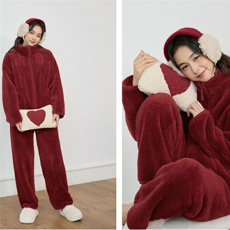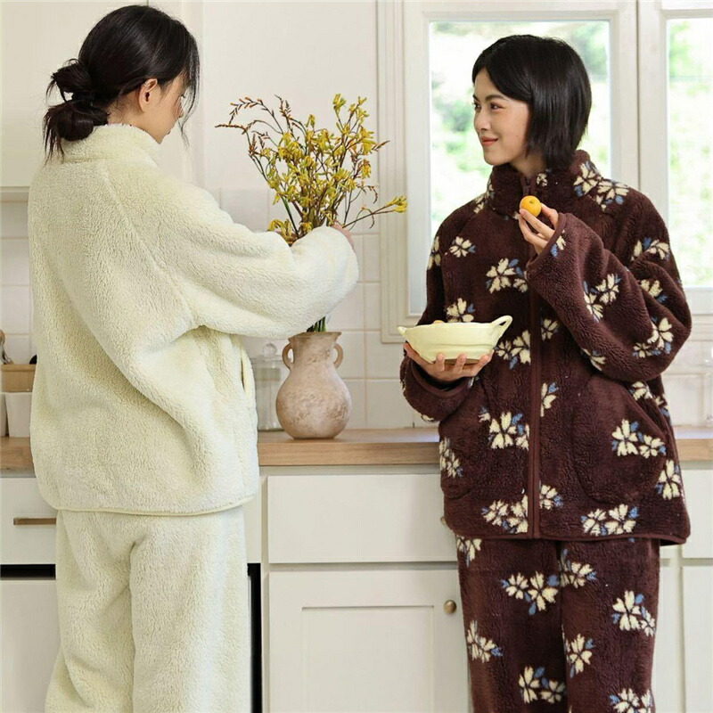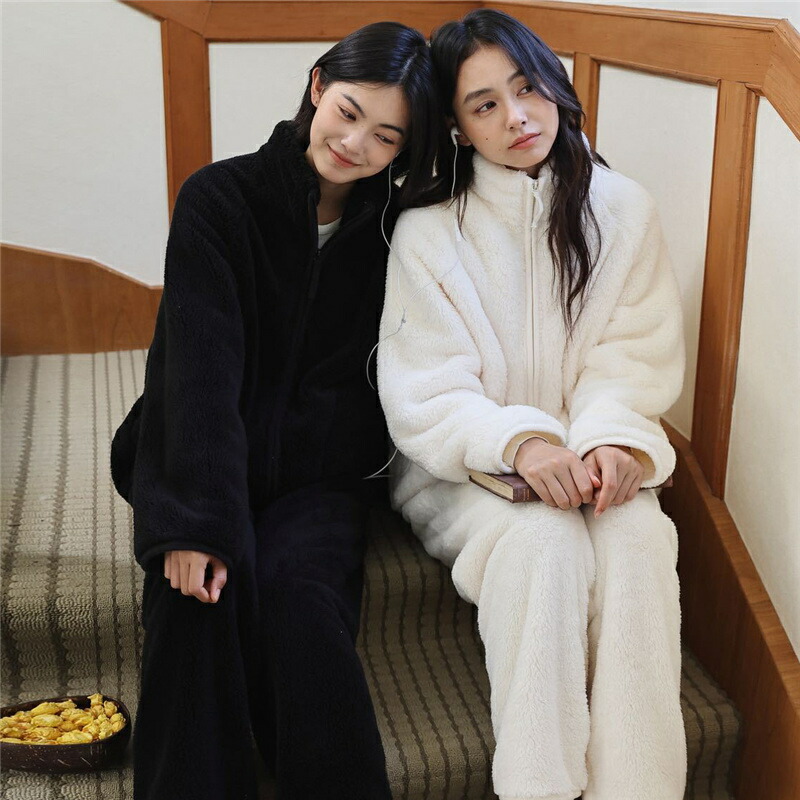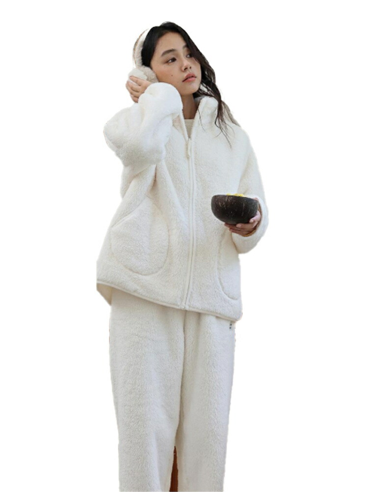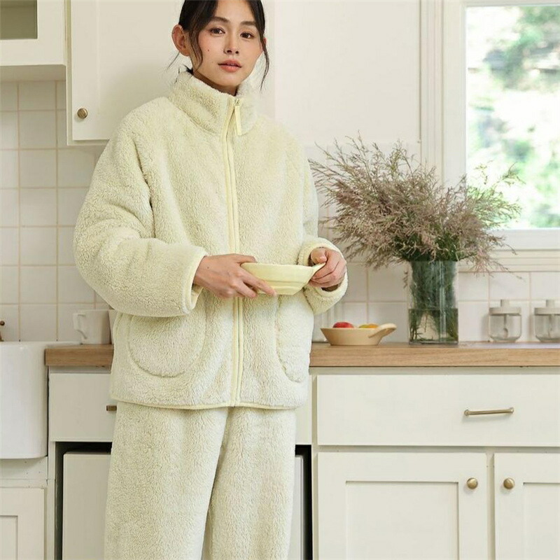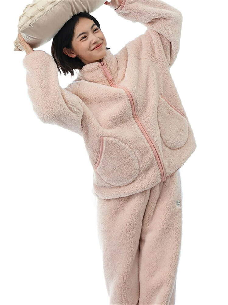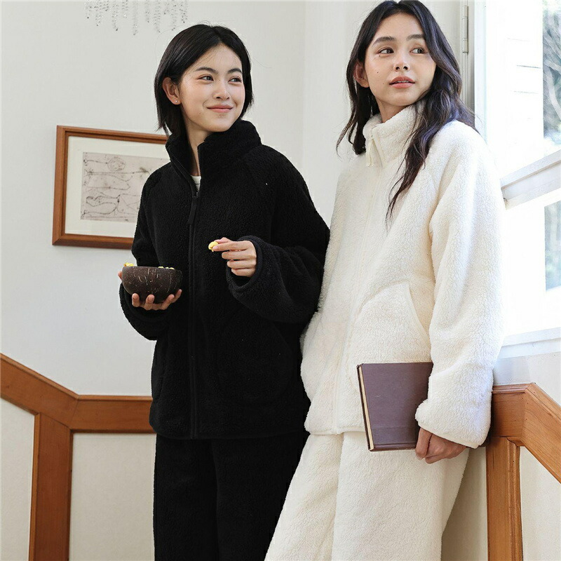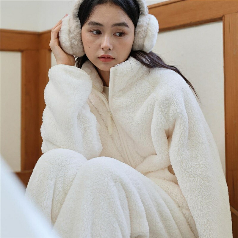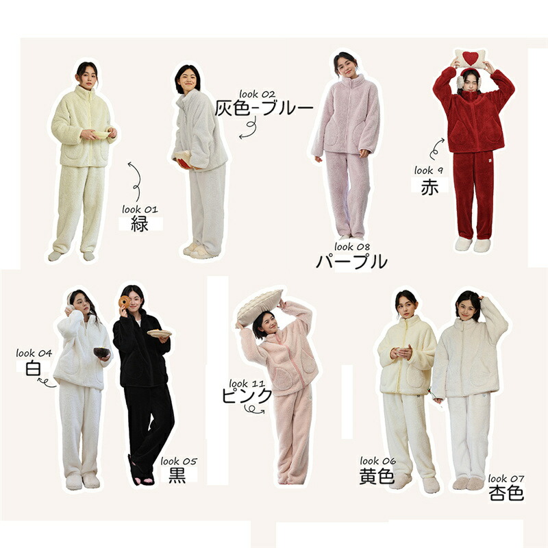 パジャマ レディース ルームウェア もこもこ あったか 厚手 ソフト カジュアル 防寒 セットアップ 秋冬 スタンド襟 前開き 女性用 かわいい 上下セット ふわふわ 部屋着 長袖 モコモコ 暖か 冬
