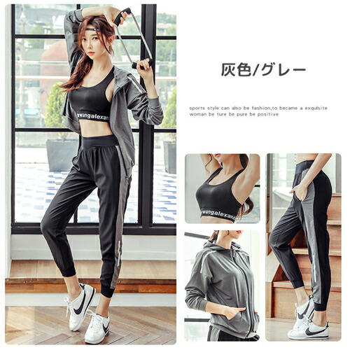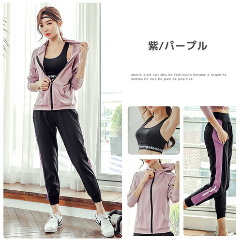 ランニングウェア レディース 3点セッ スポーツ アウトドア 通販 紫-3点セット 灰色-3点セット ピンク-3点セット S M L XL 2XL