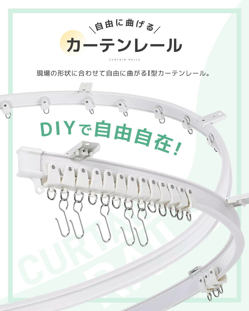 カーテンレール カット可能 1m 2m 5m カット自在 ランナー 頑丈 静音性 耐荷重15kg 間仕切り 開閉簡単 シンプル 曲がるカーテンレール 取付簡単 曲げ可能 正面付け 天井付け 長さ調整