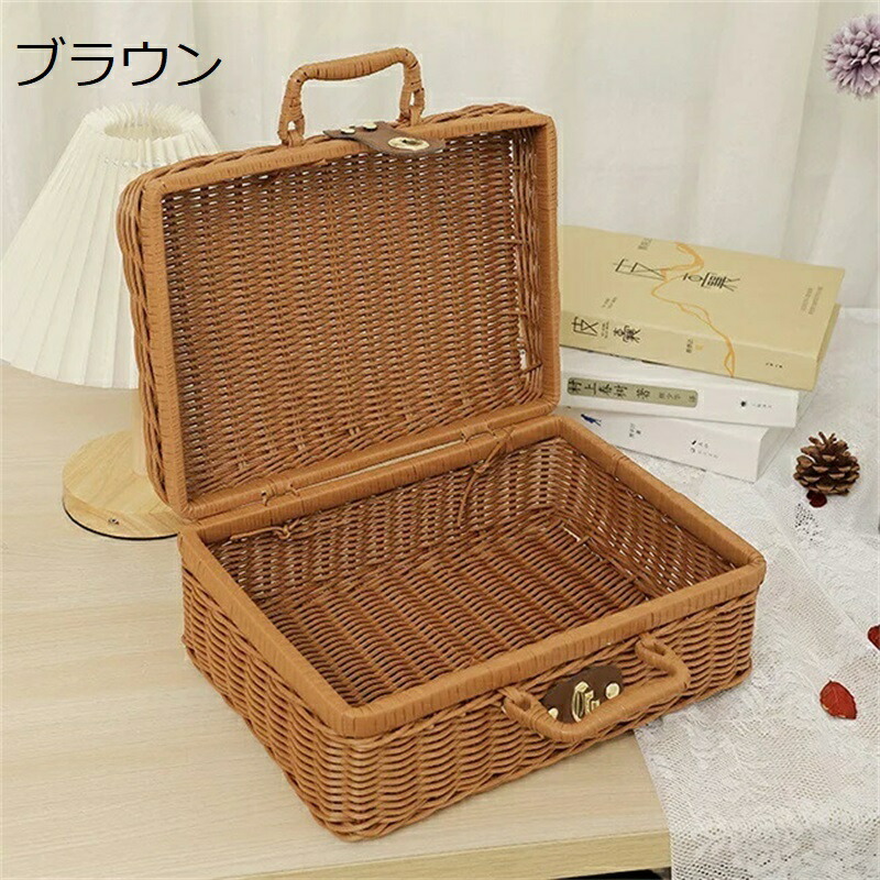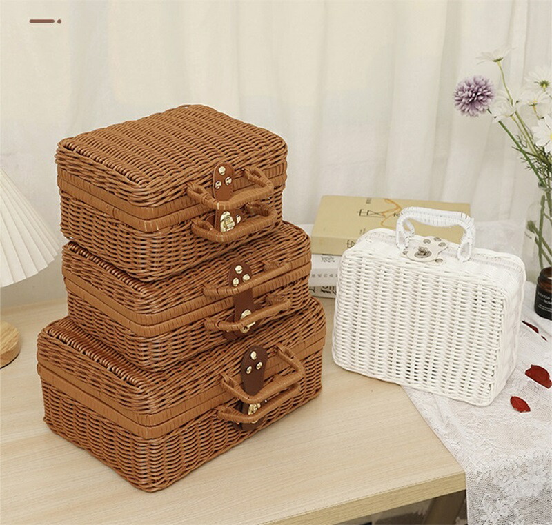 フタ付き かご バスケット カゴ 籐調 ブラウン ホワイト 22*17*11cm 26*17*11cm 30*21*13cm 35*24*12cm