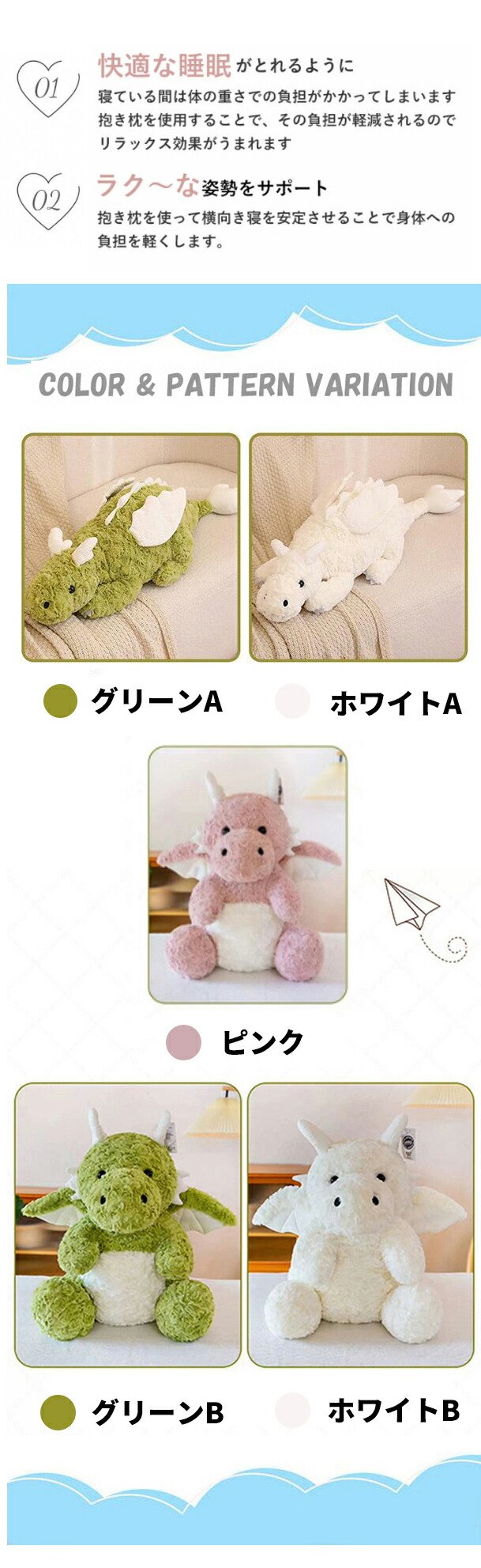 ファーストトイ かわいい龍 ドラゴン おもちゃ ゲーム 早い者勝ち ピンク グリーンA グリーンB ホワイトA ホワイトB 30cm 42cm 56cm 70cm 90cm 135cm