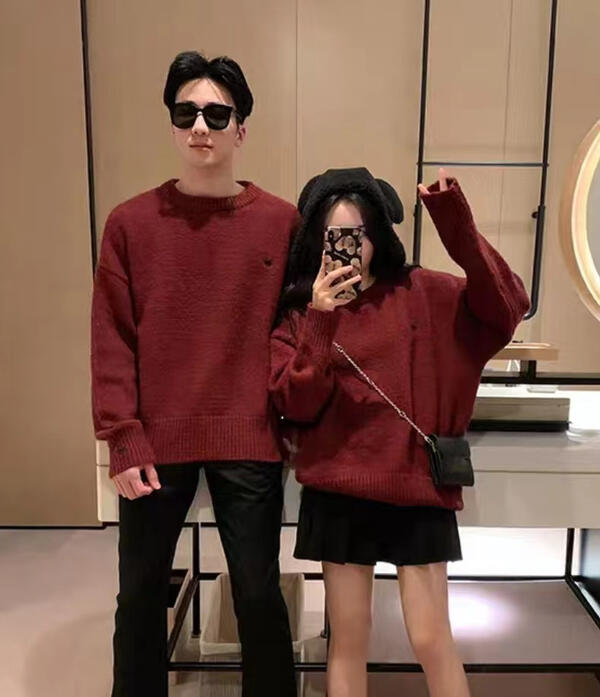 長袖ニットセーター ペアルック カップ レディースファッション 早い者勝ち グレー ベージュ ワインレッド S M L XL XXL