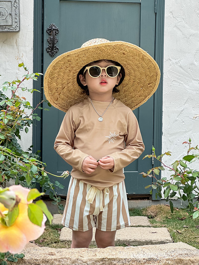 キッズ水着 男の子 セパレーツ 上下セット 水着 長袖 ボーイズ 子供 ショートパンツ スクール水着 ジュニア水着 プール スイムウェア ラッシュガード