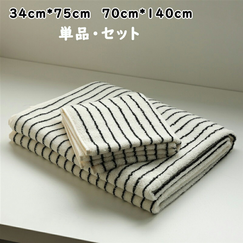 単品 セット フェイスタオル バスタオル 洗顔タオル タオルセット 綿100% 34cm*75cm 70cm*140cm ストライプ カップル 男女兼用 プレゼント 通気性 おしゃれ シンプ ふんわり