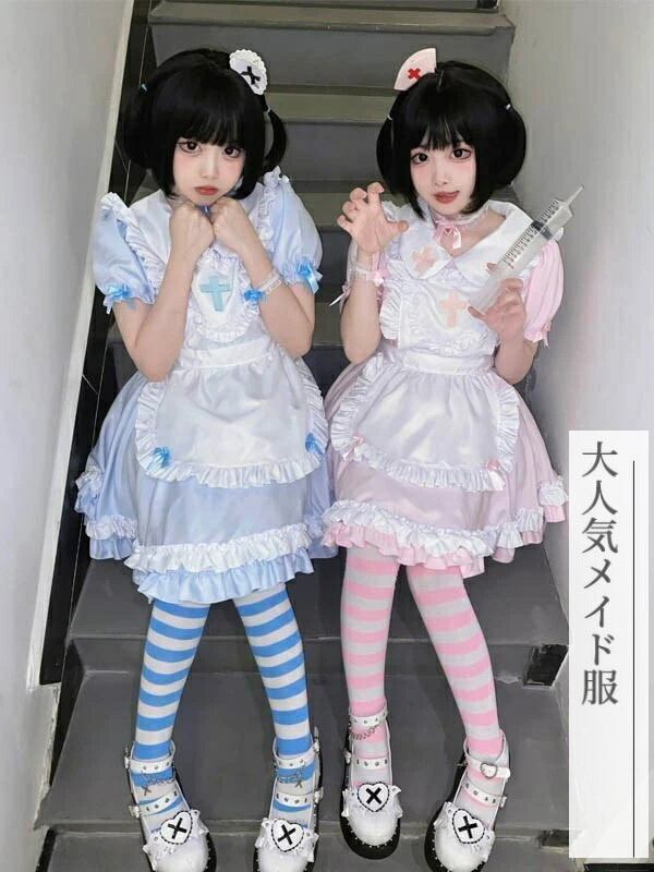 ナース風 メイド服 可愛い コスプレ衣 ホビー 超目玉商品 ブルー ピンク ブラック S M L XL