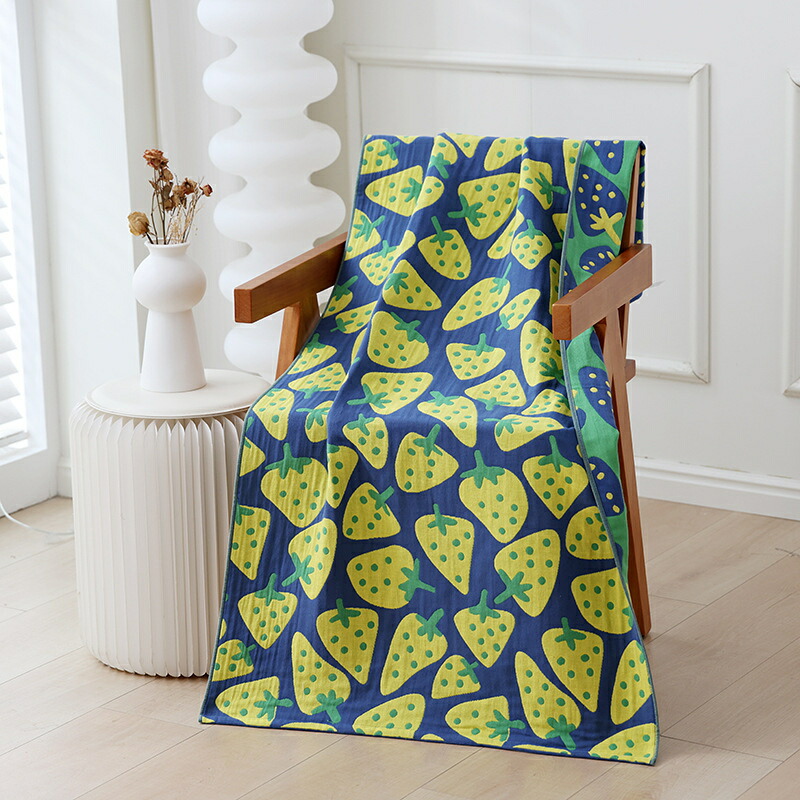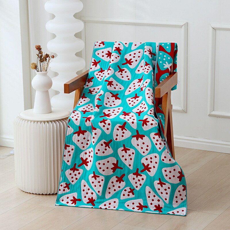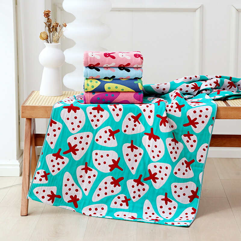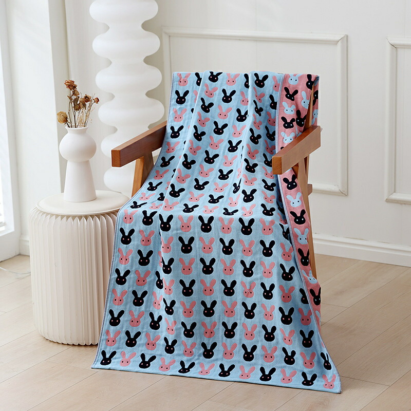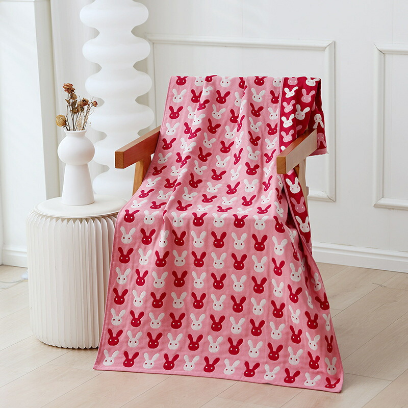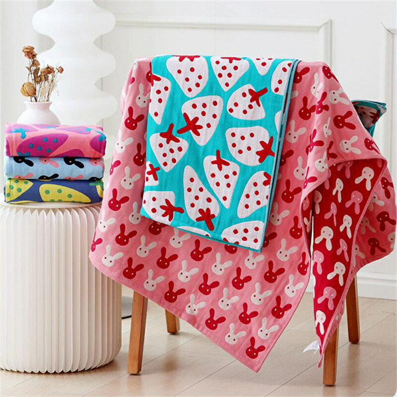 ガーゼ 大判 バスタオル 兎 苺 イチゴ おくるみ ガーゼタオル ブランケット 掛け布団 お昼寝ケット 大人 子供用 肌触り 柔らか 通気性 出産祝い インスタ映え シングル コットンガーゼ 入園祝い