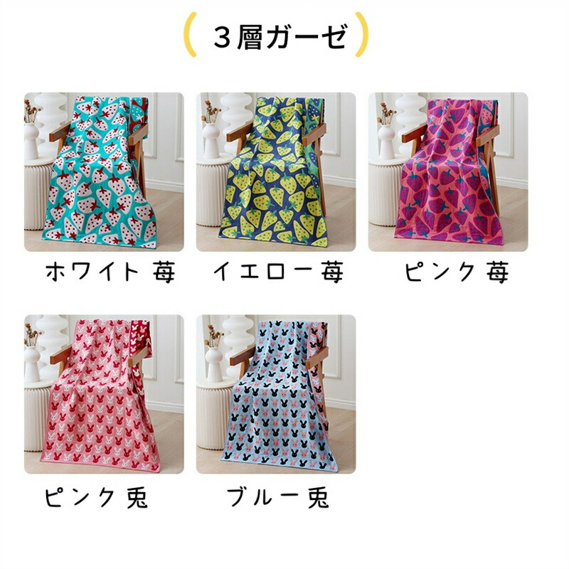 ガーゼ 大判 バスタオル 兎 苺 イチ ベビー 寝具 ベッド 毛布 ブランケット 新作 ホワイト苺 イエロー苺 ピンク苺 ピンク兎 ブルー兎