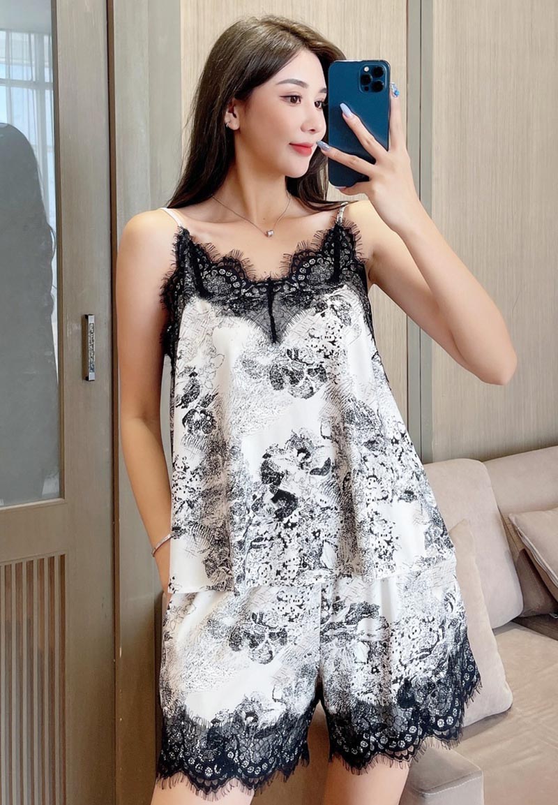 ルームウェア レディース パッド付き 春夏 上下セットレースが付いたパジャマ ノースリーブトップス 短パン ショートパンツ 2点セット キャミソール 可愛い セクシー 無地 部屋着 寝巻き シンプル