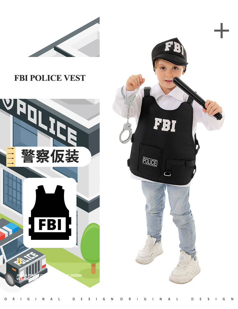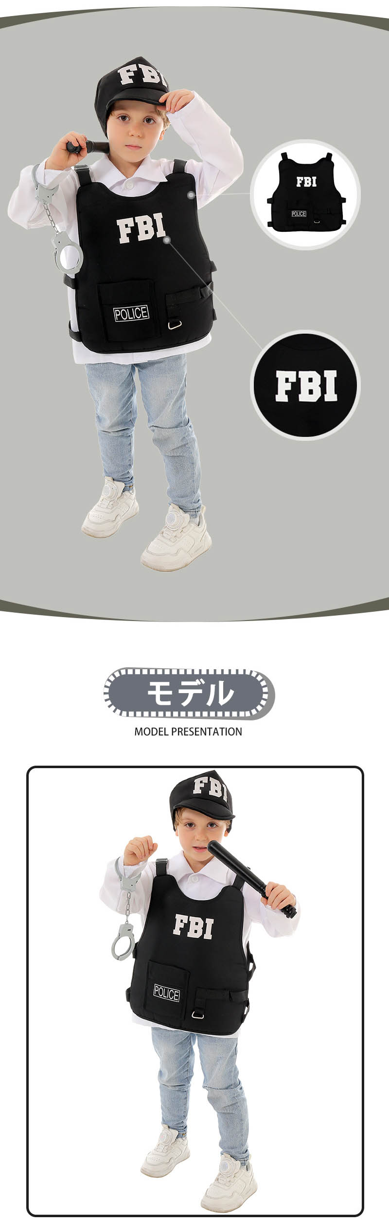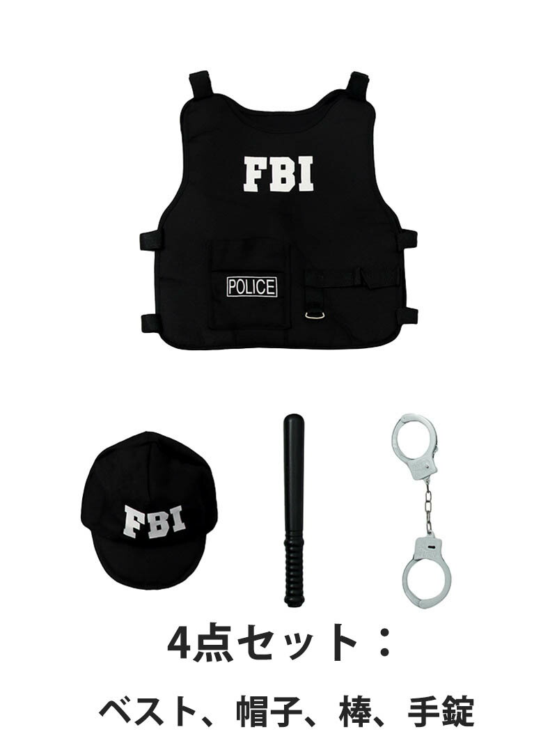 子供ハロウィン衣装 コスプレ 警察 ベスト FBI 4点セット police ガールズ ボーイズ キッズ 衣装 子供用 仮装 halloween コスチューム 舞台 ステージ イベント