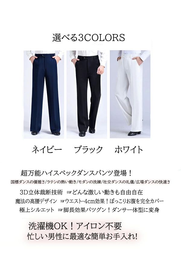 男性社交ダンス衣装 ズボン 高腰設計競 体操 ダンス 社交ダンス ウェア 人気 ネイビー ホワイト ブラック 29 30 31 32 33 34 36 38 40