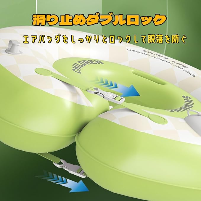 【安全 安心】滑り止めのダブルロックはエアバッグをしっかりとロックして脱落を防ぐ。内側は柔らかく滑らかで、赤ちゃんの肌を傷つけません。安全で無毒な材質は、赤ちゃんが舐めても大丈夫。
