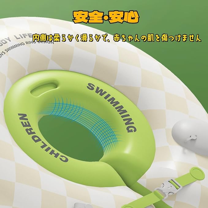 【品質な素材】安全で環境に優しいPVC素材を用いて製造する。2倍厚み材質は丈夫で耐食性が抜群、ガス漏れ防止の上に防水性も優れています。この赤ちゃんうきわは別のエアポンプを必要とせず、内蔵のエアポンプを押すだけで急速にインフレーションできます。