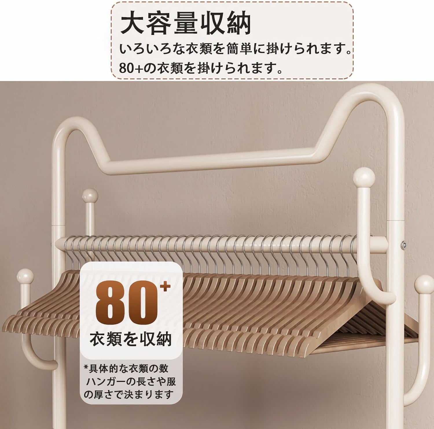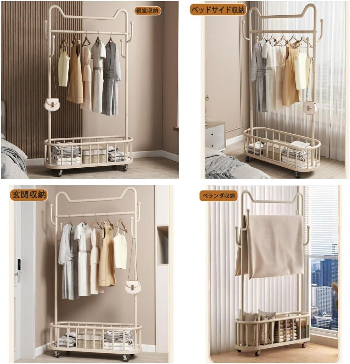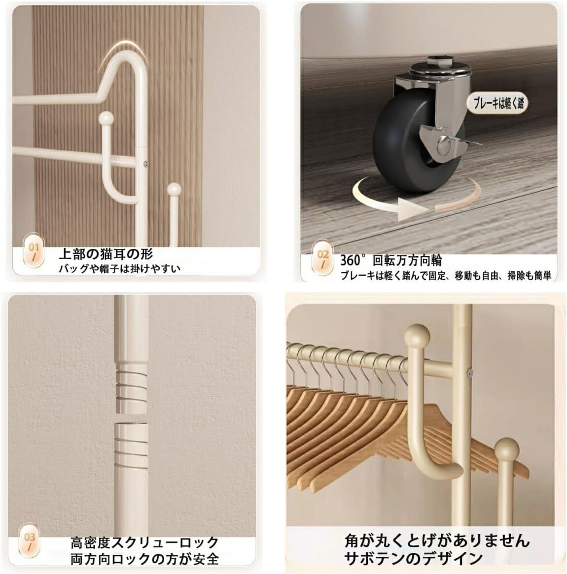 ハンガーラックキャスター付き洋服ラック ブラック ホワイト ゴールド 60 cm猫耳【ネットフレーム】 80cm猫耳【ネットフレーム】 100cm猫耳【ネットフレーム】