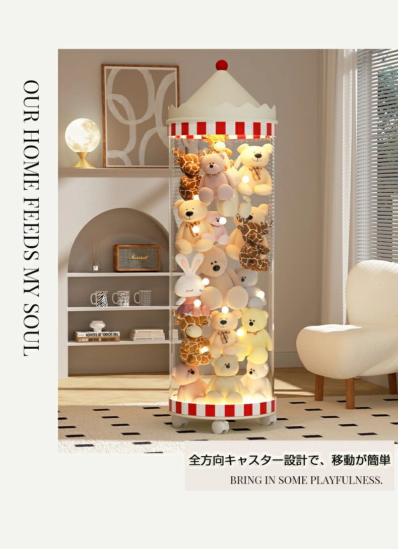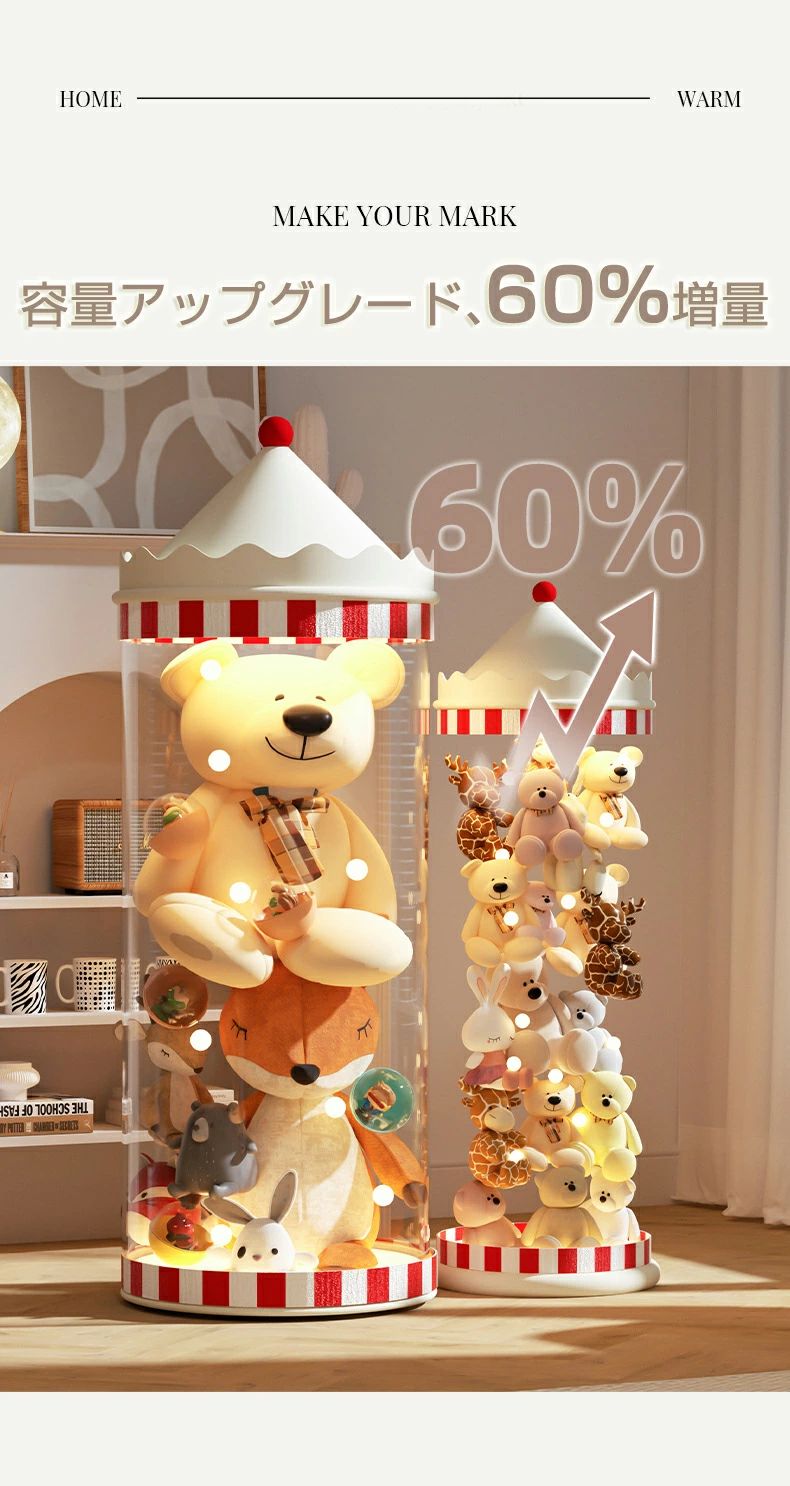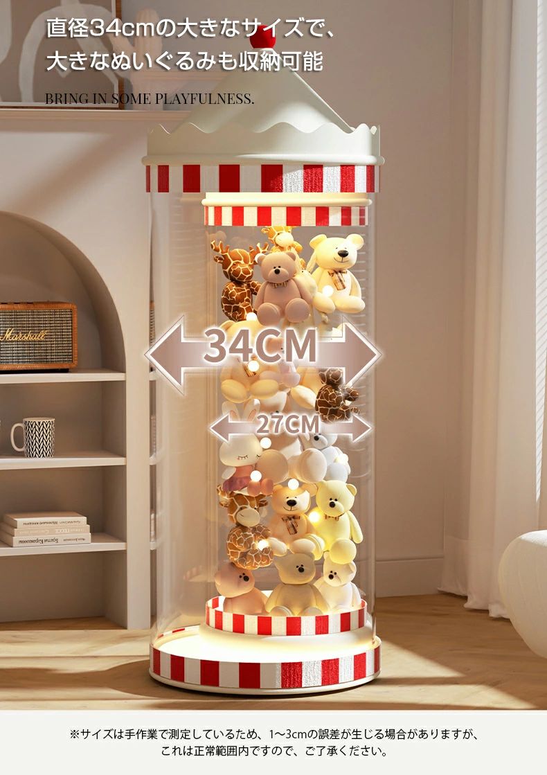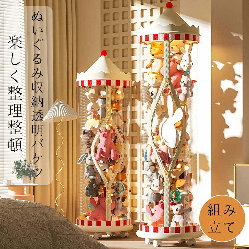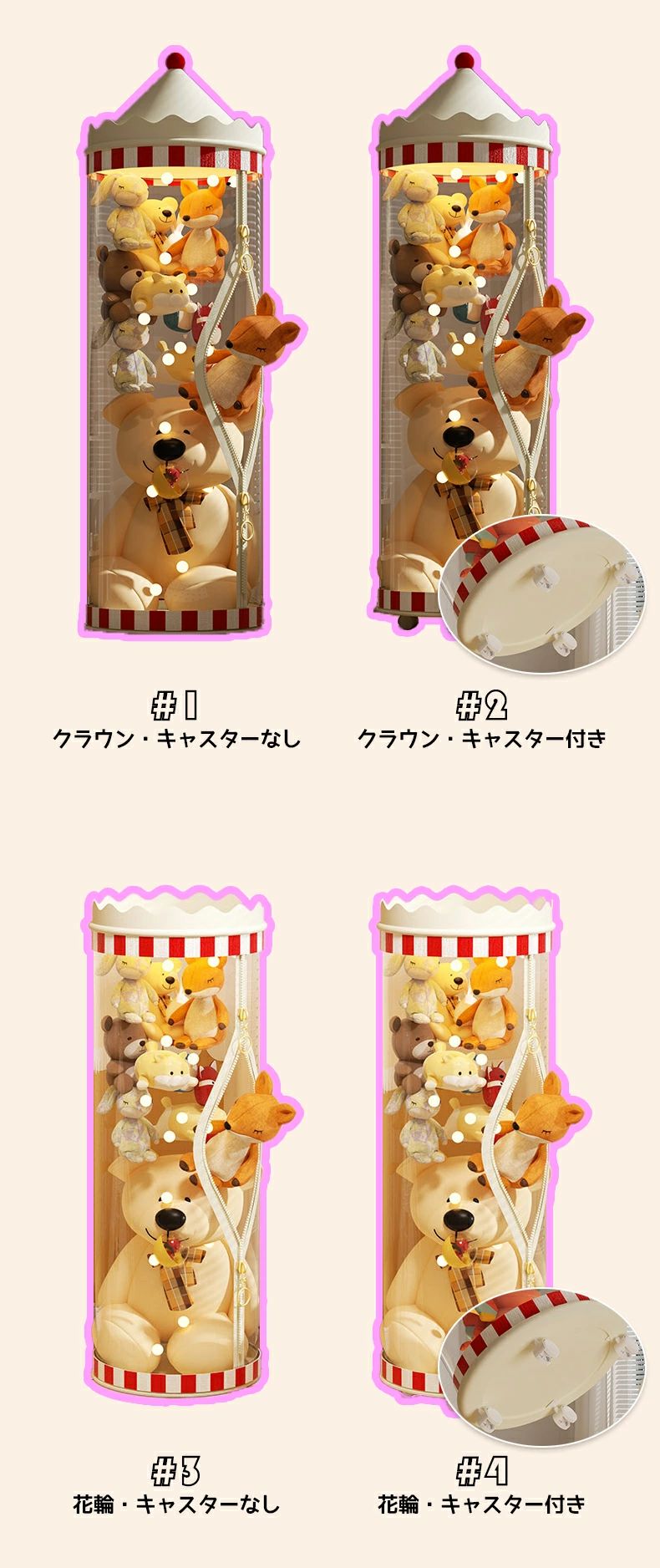 ぬいぐるみ 収納 透明 円柱 収納ボッ クラウン 花輪 無 有