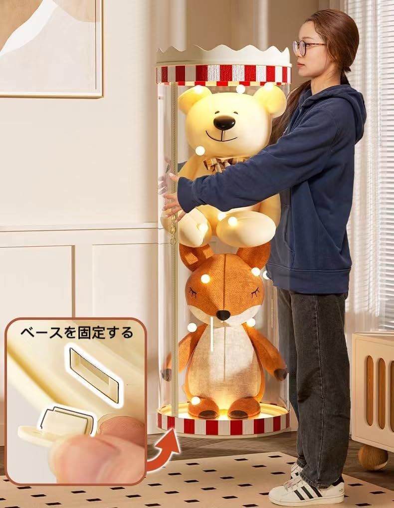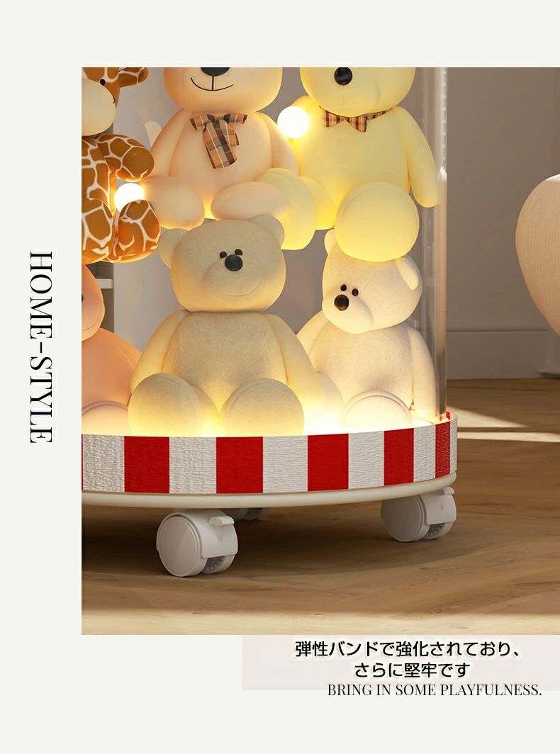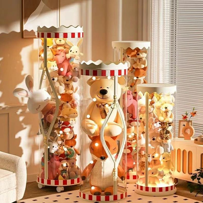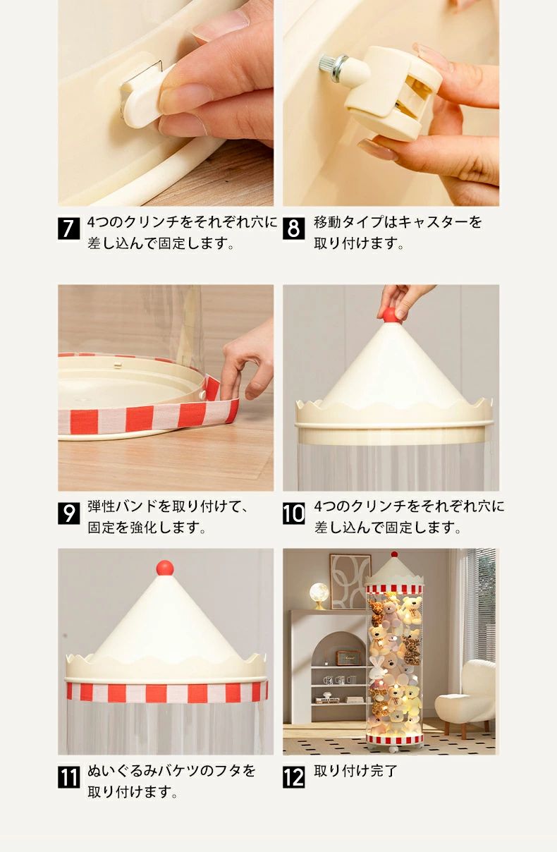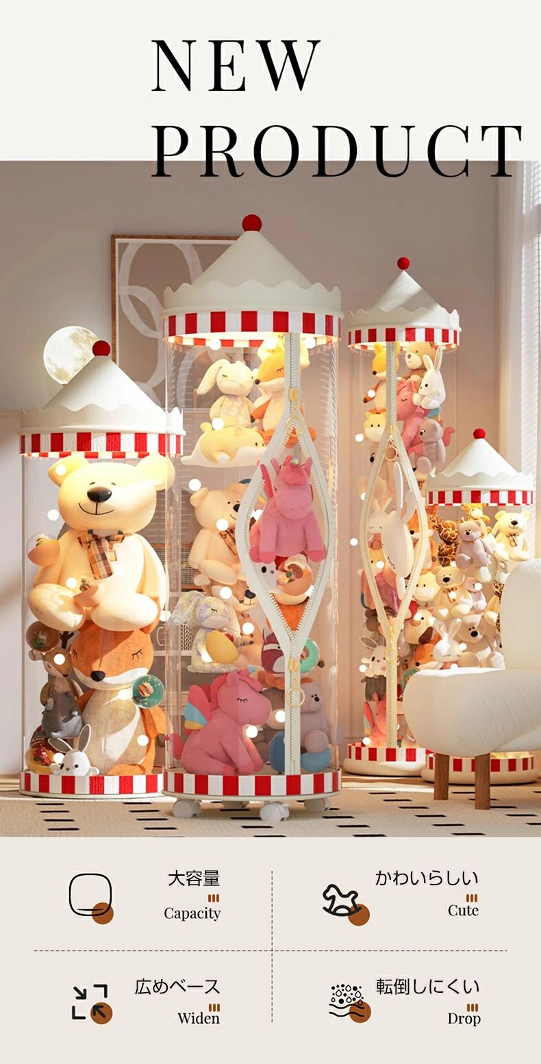 ぬいぐるみ 収納 透明 円柱 収納ボッ クラウン 花輪 無 有