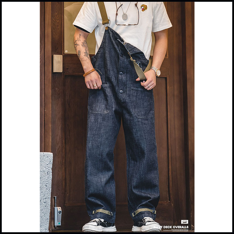 ベーシックなゆったりデザインで、着回し抜群のデニムサロペット。インナーはTシャツやタンクトップ、ニットなど何でも合わせやすく、トップスもフライトジャケットなど合わせるものを選ばない万能アイテムでコーデの豊富です。
