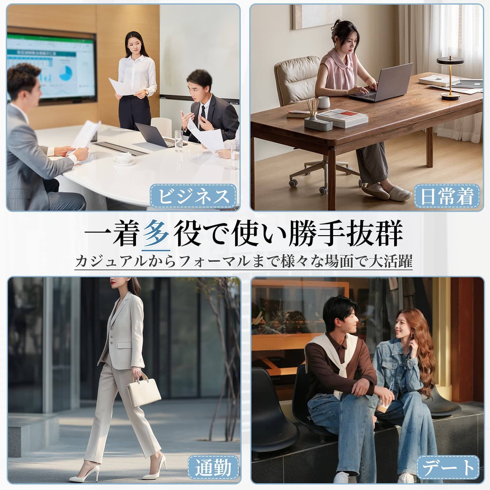 この無地デザインのパンツスーツは、テーパードシルエットにより多様なトップスと高い相性を持ち、着回し力に優れています。通勤やオフィス、仕事、事務作業(OL)に最適で、カジュアルな日常着やきれいめなシーン、春夏秋のアウトドアにも幅広く対応可能な、レディースにとって欠かせない万能な九分丈パンツスーツです。