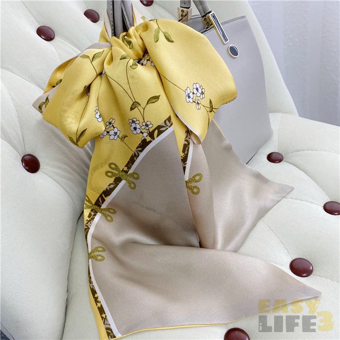 スカーフ シルク100% 春 夏 薄手 バッグ 小物 ブランド雑貨 新登場! イエロー ピンク