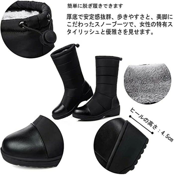 ブーツ レディース スノーブーツ ロン 靴 新作 ブラック レッド ブルー 22.5 23.0 23.5 24.0 24.5 25.0 25.5 26.0 26.5 27.0
