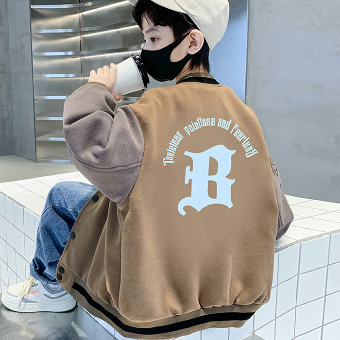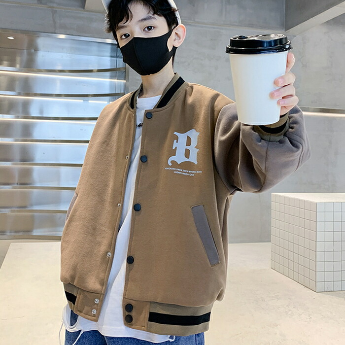 スタジャン子供服 春秋 可愛い 通園 通学 秋ジャケット 秋コート ジャケット おしゃれ カジュアルコーデ 異素材 ジャケット スタジャン 男の子 キッズ スプリングコート ジャンパー ボーイズ バイカラー アウター ブルゾン 子供服 長袖 通気性抜群 野球服 ジュニア シンプル 男児 秋 春 上着 スウェット キュート 肌触り 秋物 防寒 無地 コーヒー ブラック 120/130/140/150/160/170cm