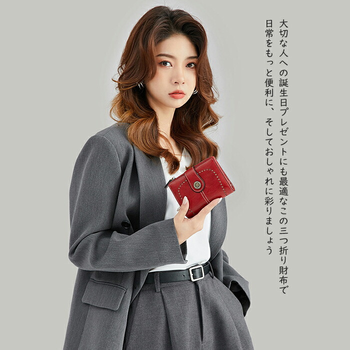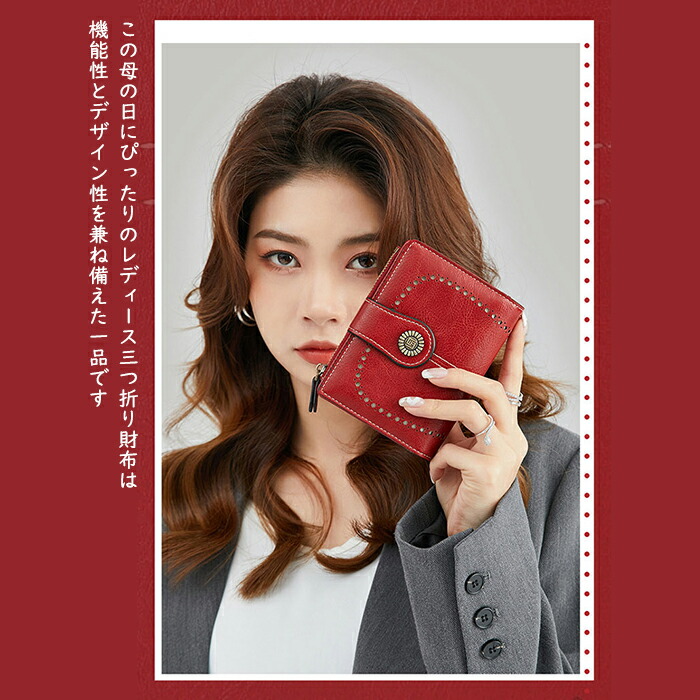 母の日 レディース 三つ折り 折り財布 バッグ 小物 ブランド雑貨 超目玉商品 レッド グリーン ブラック イエロー グレー ブラウン