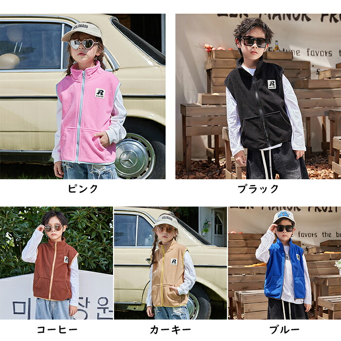 ボアベスト ベスト キッズ ボアアウタ キッズ ベビー マタニティ 新登場! ピンク ブラック コーヒー カーキー ブルー 110cm 120cm 130cm 140cm 150cm 160cm 170cm