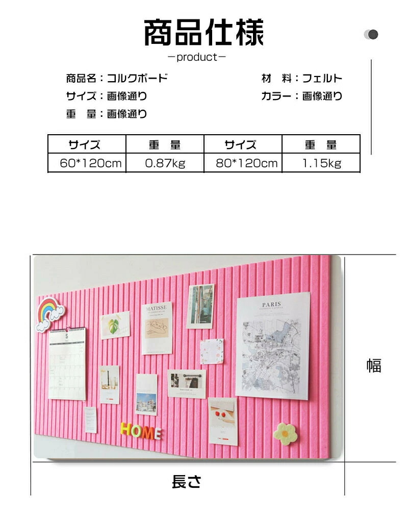 コルクボード 写真 穴不要 画鋲付 DIY 簡単設置 サイズオーダー ボード 掲示板 フォトフレーム フェルト製 ウェルカムボード 壁貼りフォトフレーム 伝言板 ポスター ハリペタ