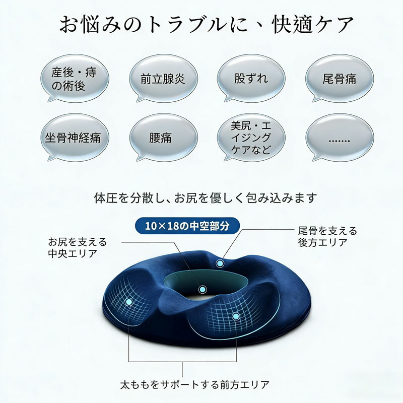 円座クッション ドーナツクッション 中空構造 通気性 低反発 圧迫分散 産後 出産 マタニティ 座布団 チェアクッション 洗える 椅子クッション 椅子 妊婦