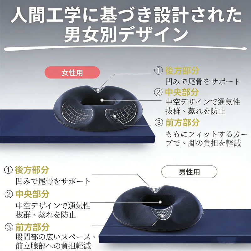 円座クッション 男性用 女性用 通気性メッシュ パイル地