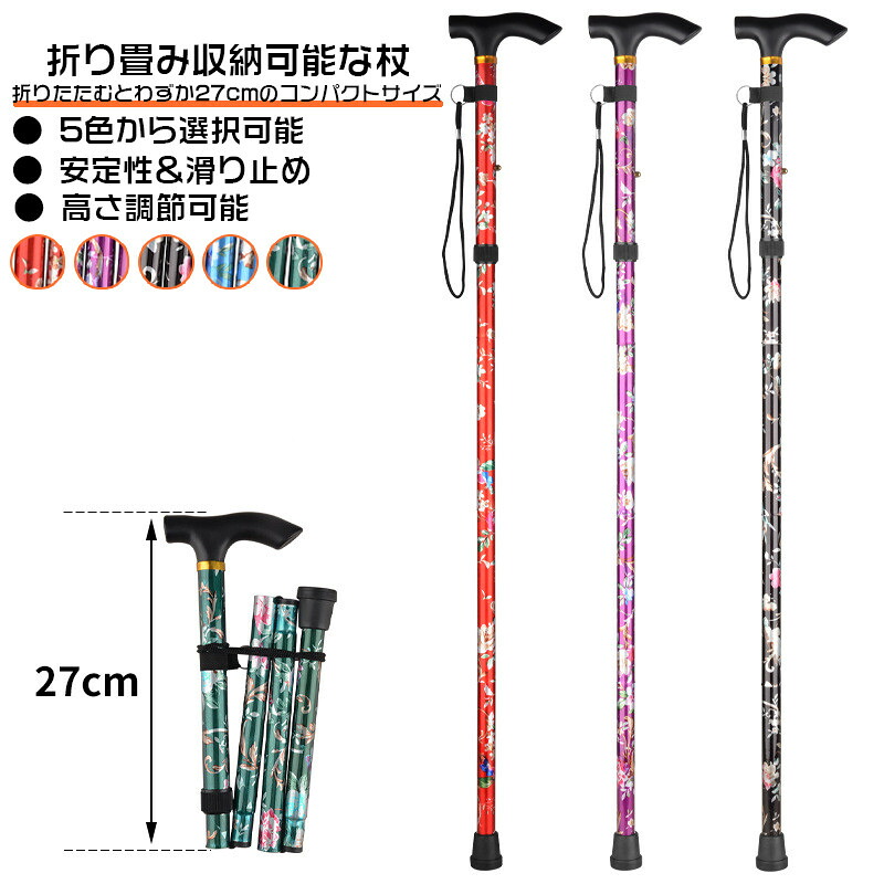 杖 自立式 折りたたみ おしゃれ 自立 レッド パープル ブラック ブルー グリーン