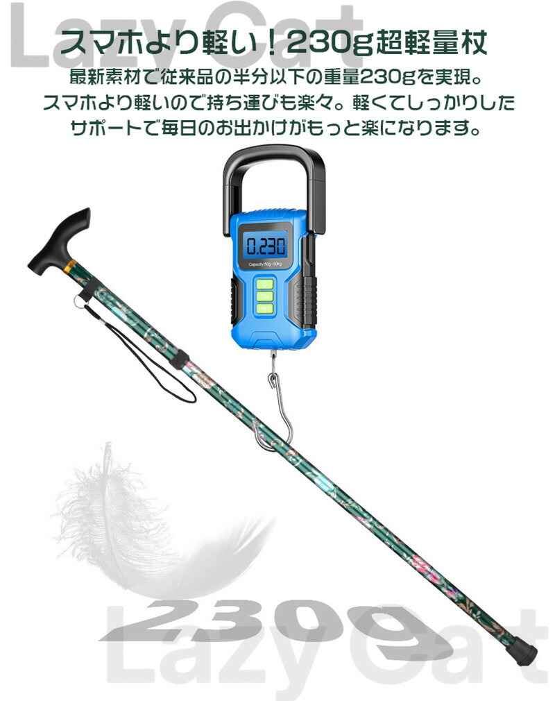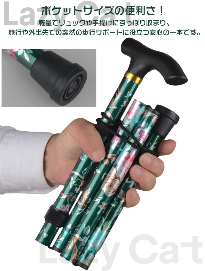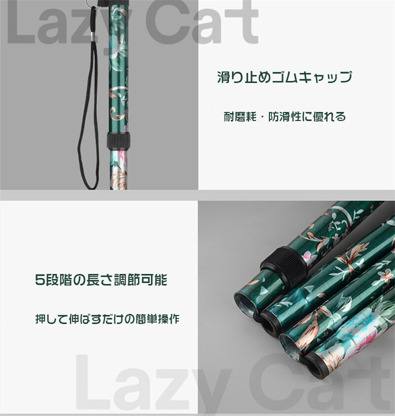 驚きの軽さで日常散策から旅行まで負担ゼロの歩行サポート 杖 自立式 折りたたみ 伸縮 歩行補助 レディース 女性用 ステッキ 長さ調節