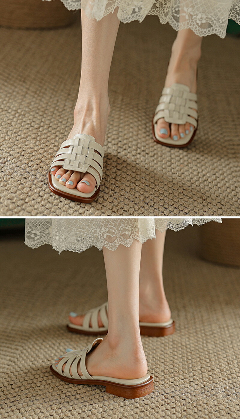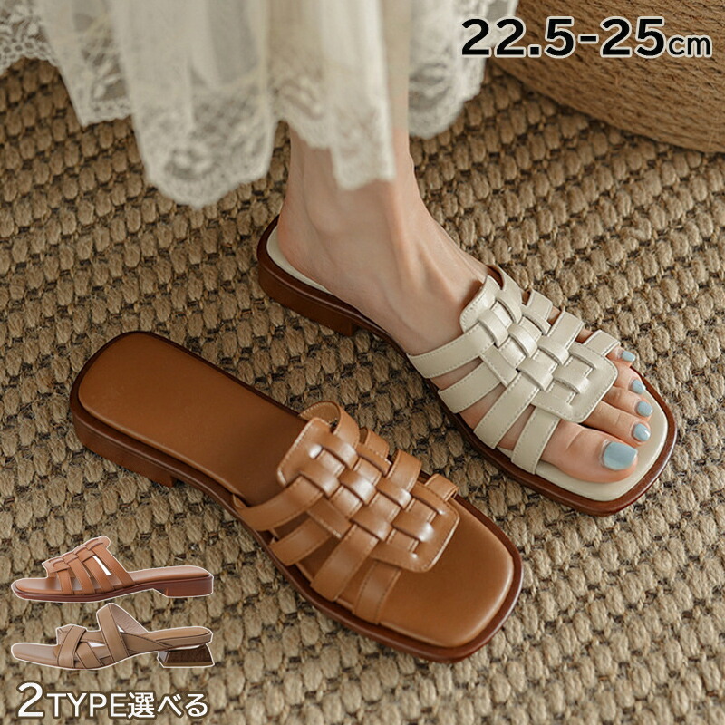 サンダル ミュール レディース ぺたんこ 歩きやすい つっかけ ローヒール スクエアトゥ 履きやすい 痛くない 夏 シンプル おしゃれ メッシュサンダル コーヒー ベー かわいい