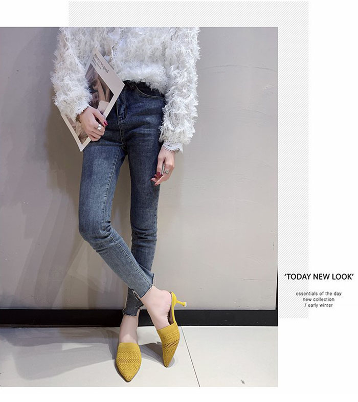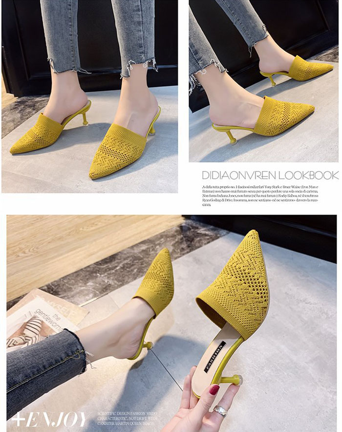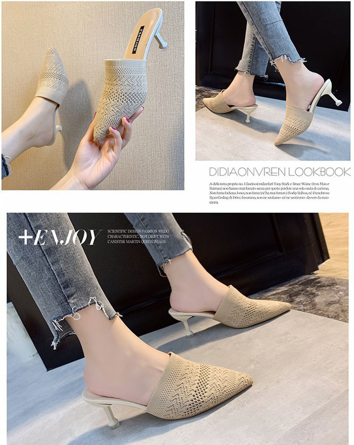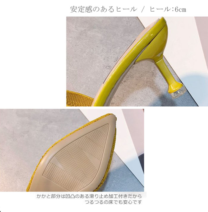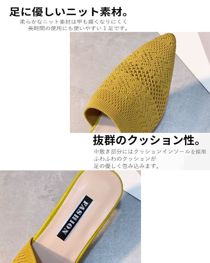 ニットサンダル レディース ニットミュール ヒール 6cm 走れる 靴 ミュールサンダル ポインテッドトゥ 柔らか ニット ミュール サンダル 歩きやすい 安定感 低反発 美脚 カジュアル