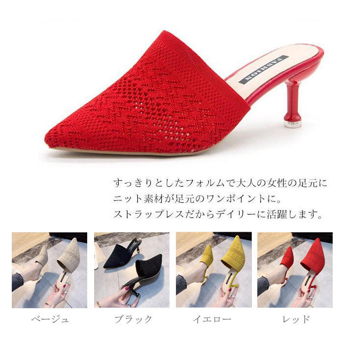 ニットサンダル レディース ニットミュ レディース靴 ミュール 通販 ベージュ ブラック イエロー レッド 34(22.0cm) 35(22.5cm) 36(23.0cm) 37(23.5cm) 38(24.0cm) 39(24.5cm) 40(25.0cm)